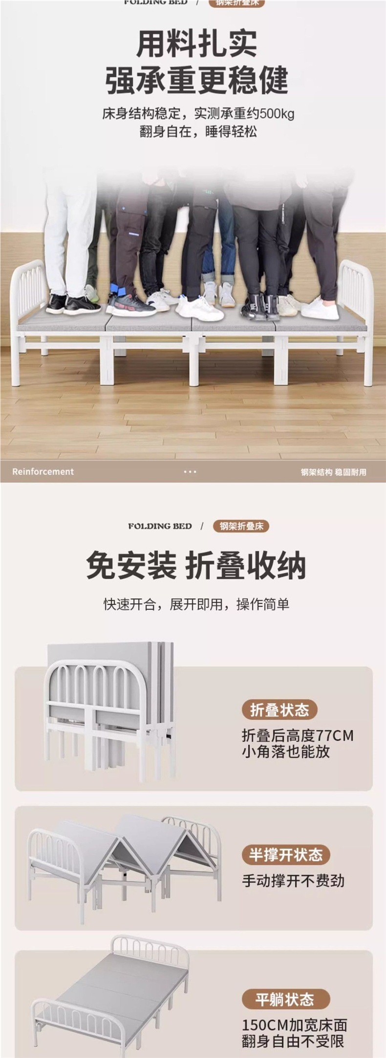 [DIMU] 접이식 침대 싱글 침대 휴대용 가정용 강화 두꺼운 철제 프레임 기숙사 더블 침대 임대 간이 침대스토어 가기