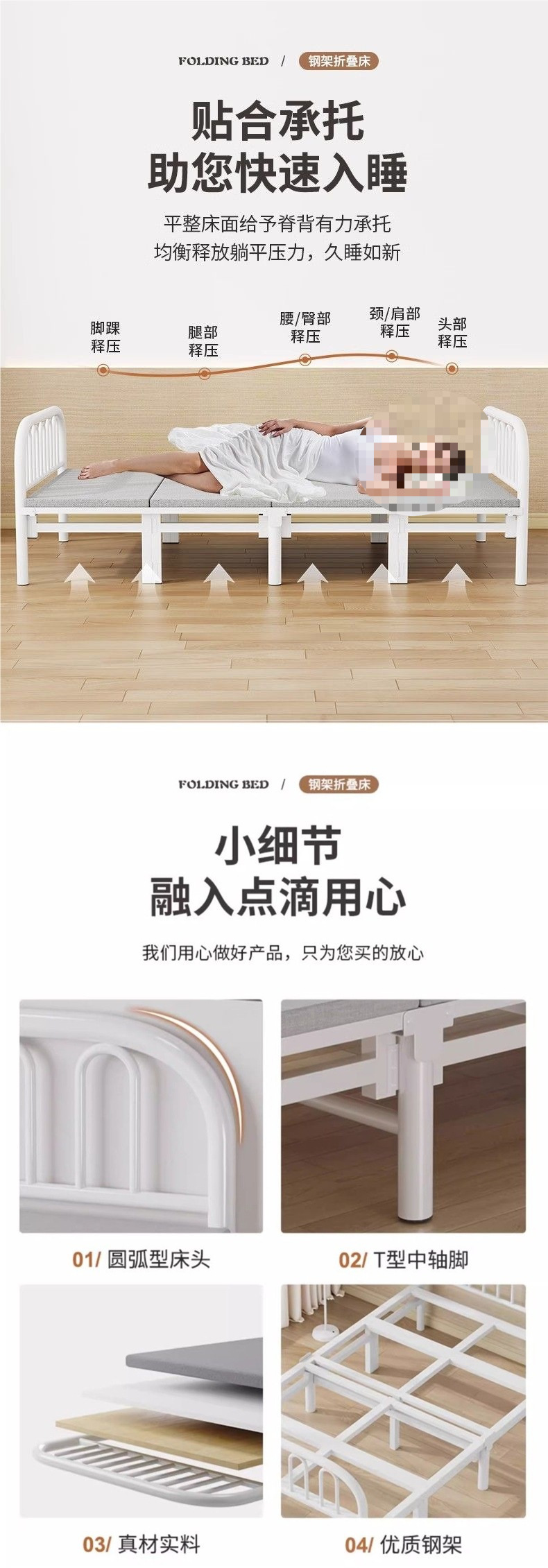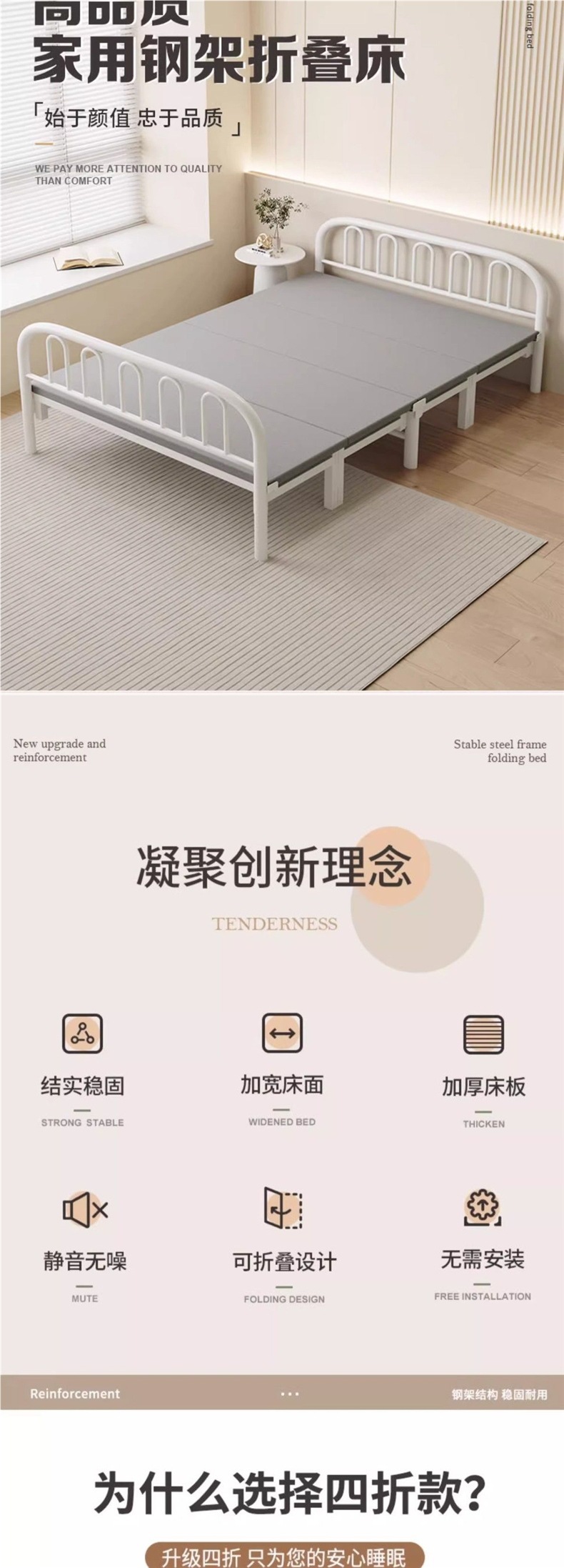 [DIMU] 접이식 침대 싱글 침대 휴대용 가정용 강화 두꺼운 철제 프레임 기숙사 더블 침대 임대 간이 침대