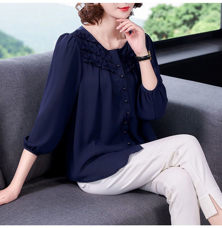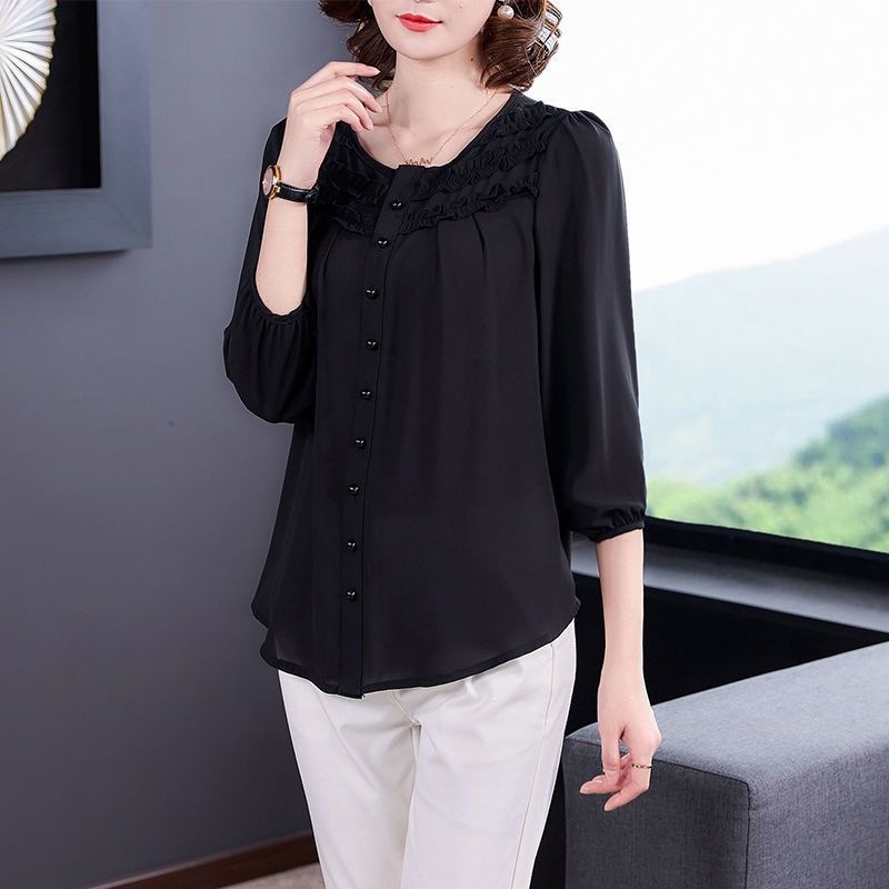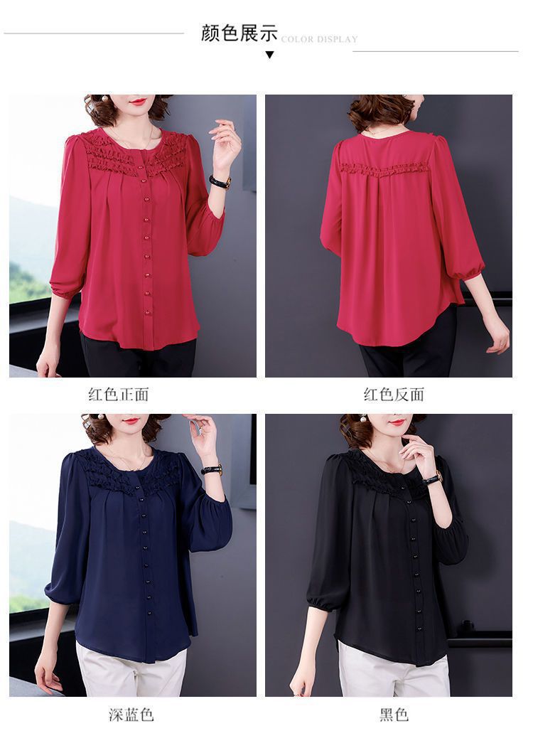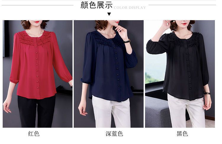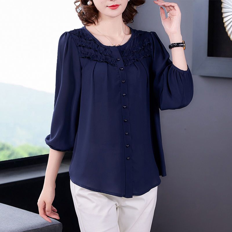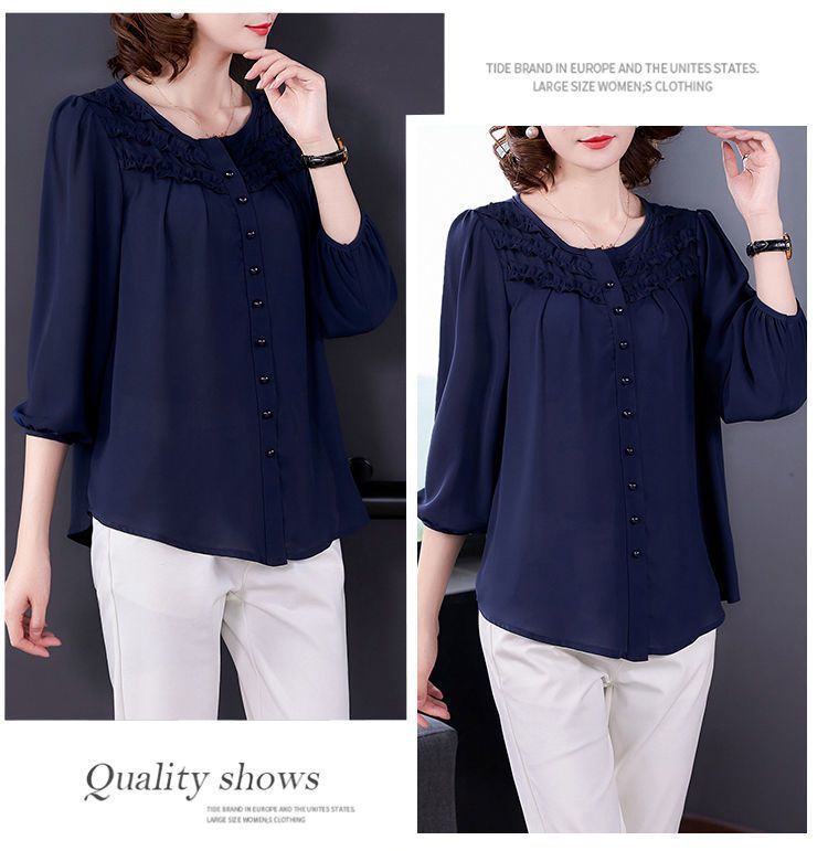 여성용 루즈한 플러스 사이즈 쉬폰 셔츠 2025 봄 여름 신상 9부 소매 배 커버 패셔너블 가디건 엄마 하의 탑스토어 가기