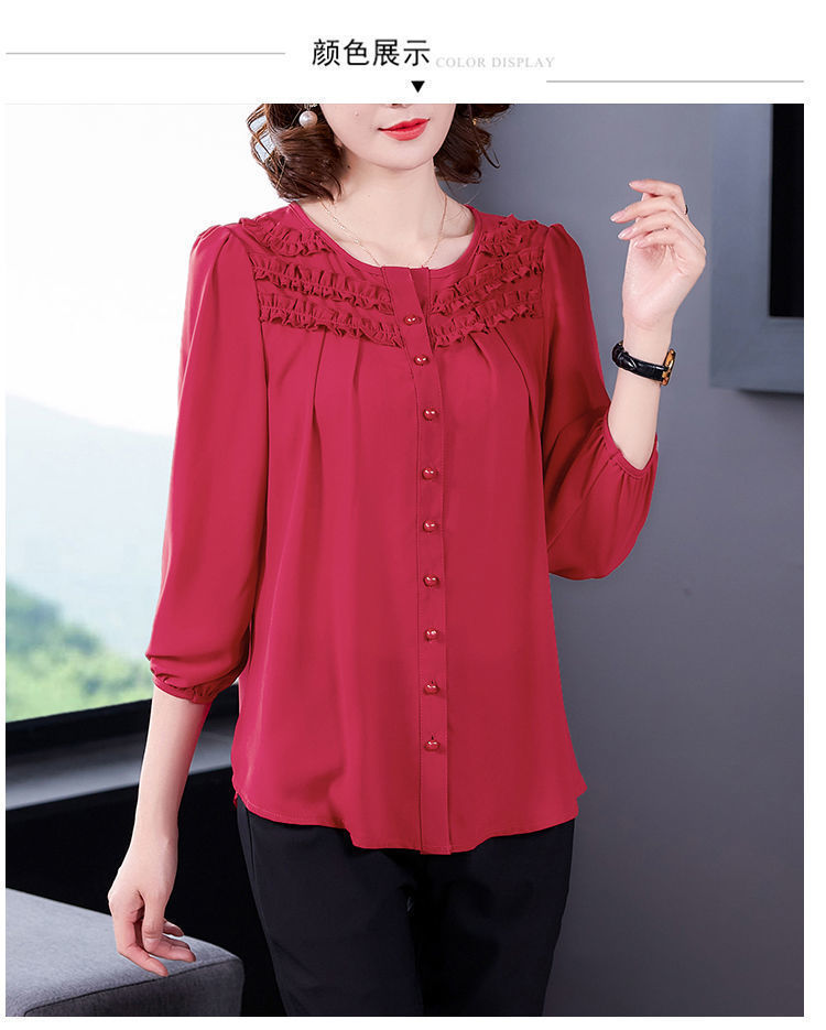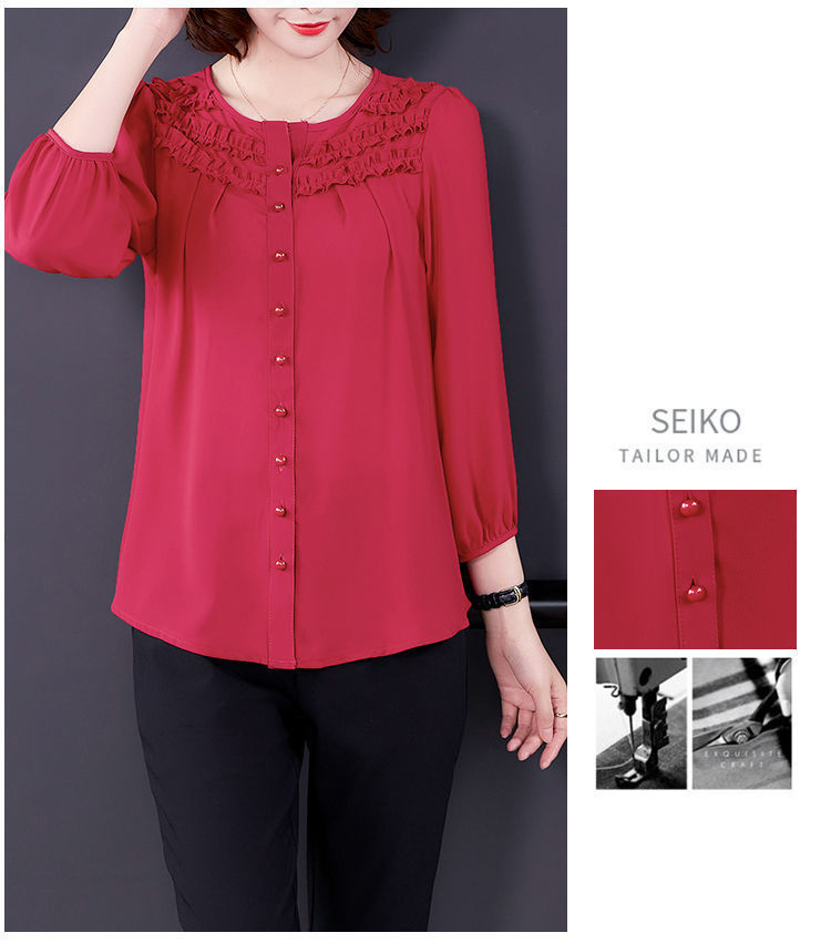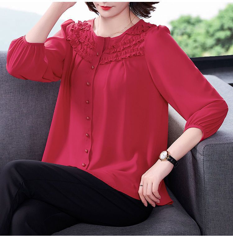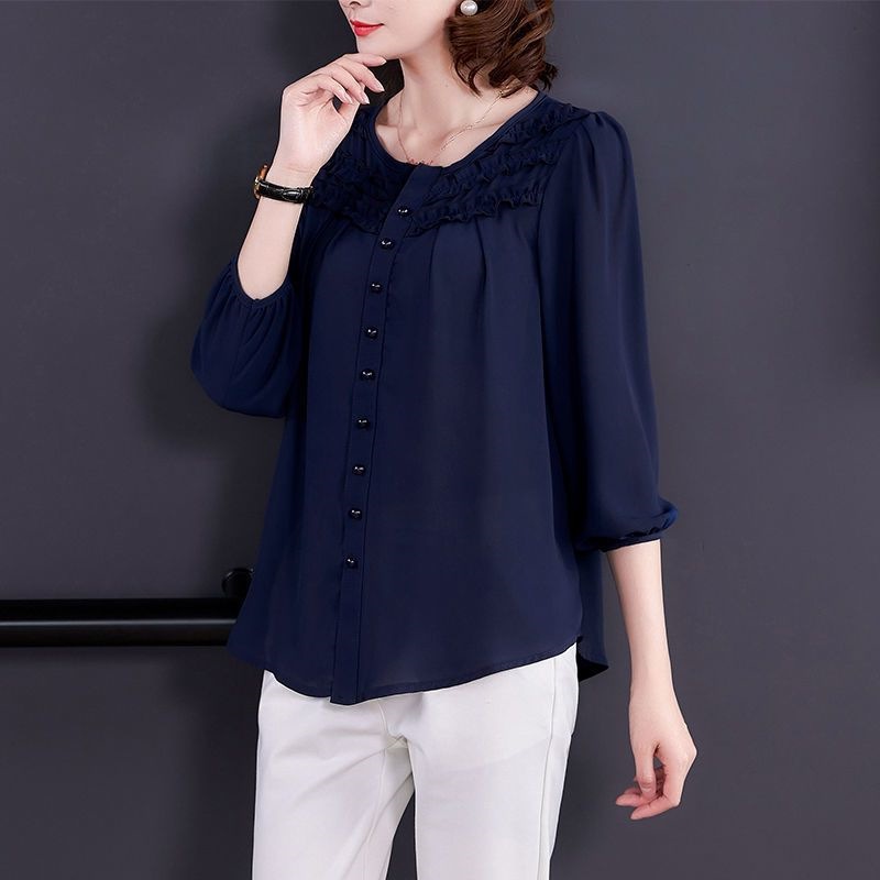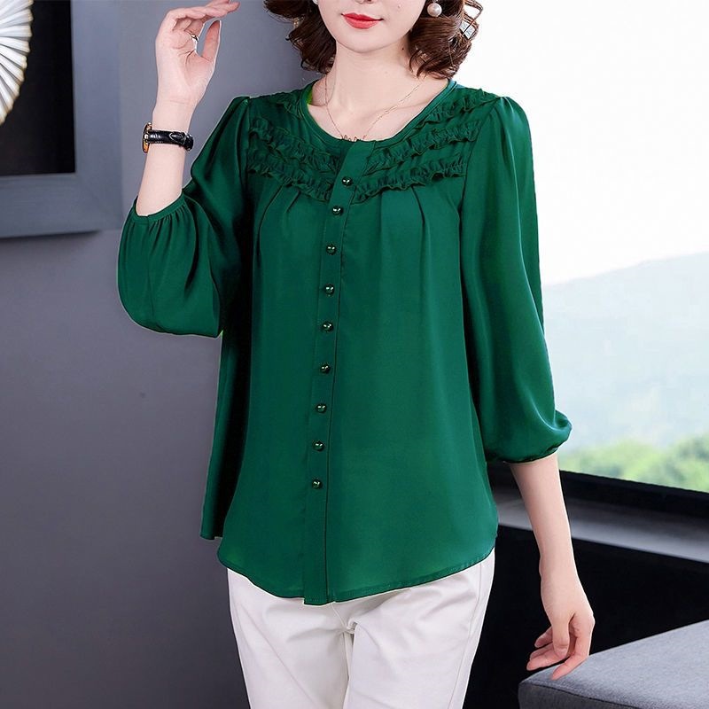 여성용 루즈한 플러스 사이즈 쉬폰 셔츠 2025 봄 여름 신상 9부 소매 배 커버 패셔너블 가디건 엄마 하의 탑스토어 가기