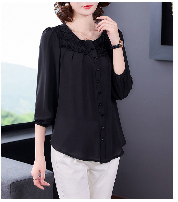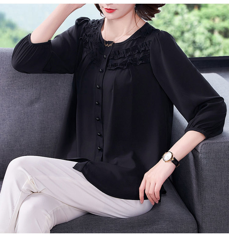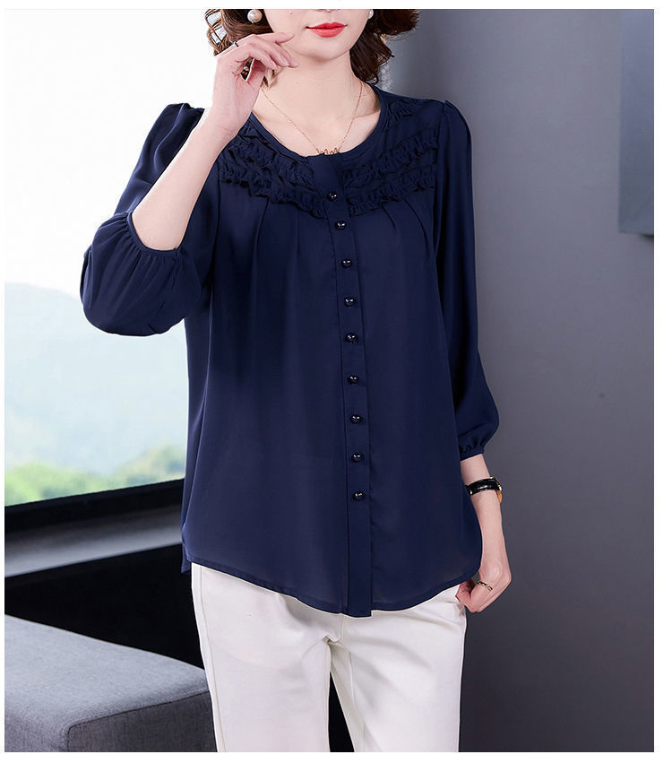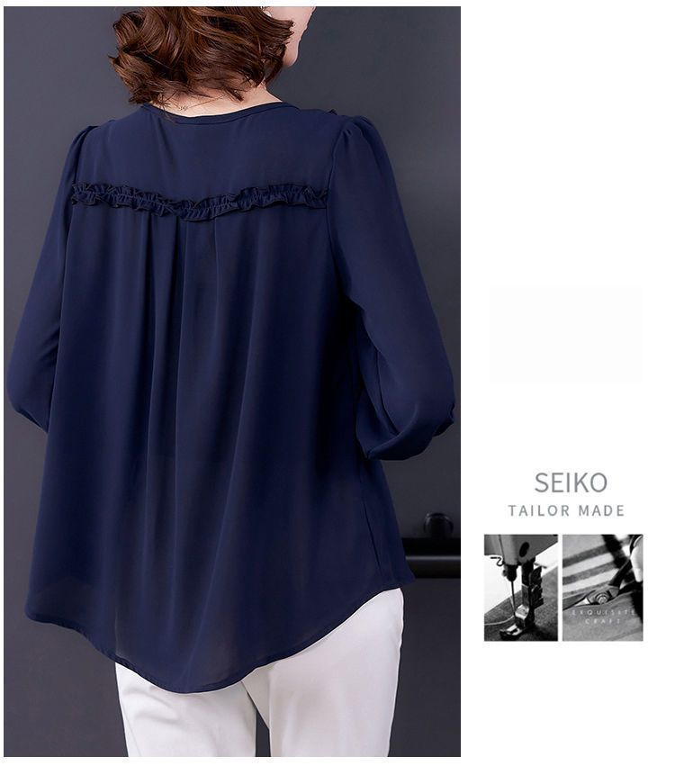 여성용 루즈한 플러스 사이즈 쉬폰 셔츠 2025 봄 여름 신상 9부 소매 배 커버 패셔너블 가디건 엄마 하의 탑
