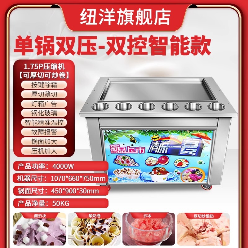 뉴양 두껍게 썬 요거트 기계, 상업용 아이스크림 기계, 아이스크림 기계, 아이스 롤 기계, 과일 아이스크림 기계, 아이스 죽 기계스토어 가기