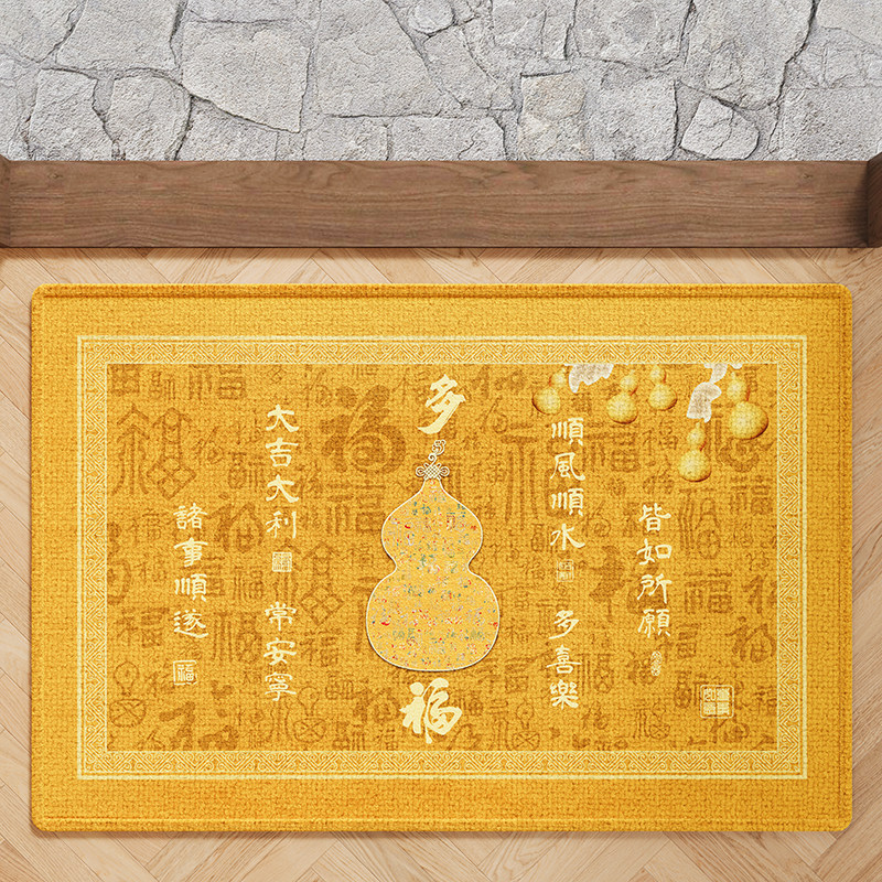 황금 행운의 조롱박 반원형 새로운 중국 스타일 바닥 매트 입구 문 매트 입구 카펫 입구 로비 노란색 발 매트스토어 가기
