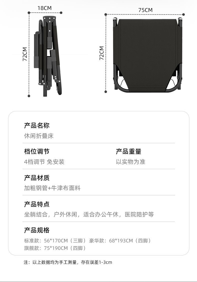접이식 침대 싱글 침대 가정용 휴대용 다기능 안락 의자 사무실 간단한 점심 시간 성인 낮잠 야외 행진스토어 가기