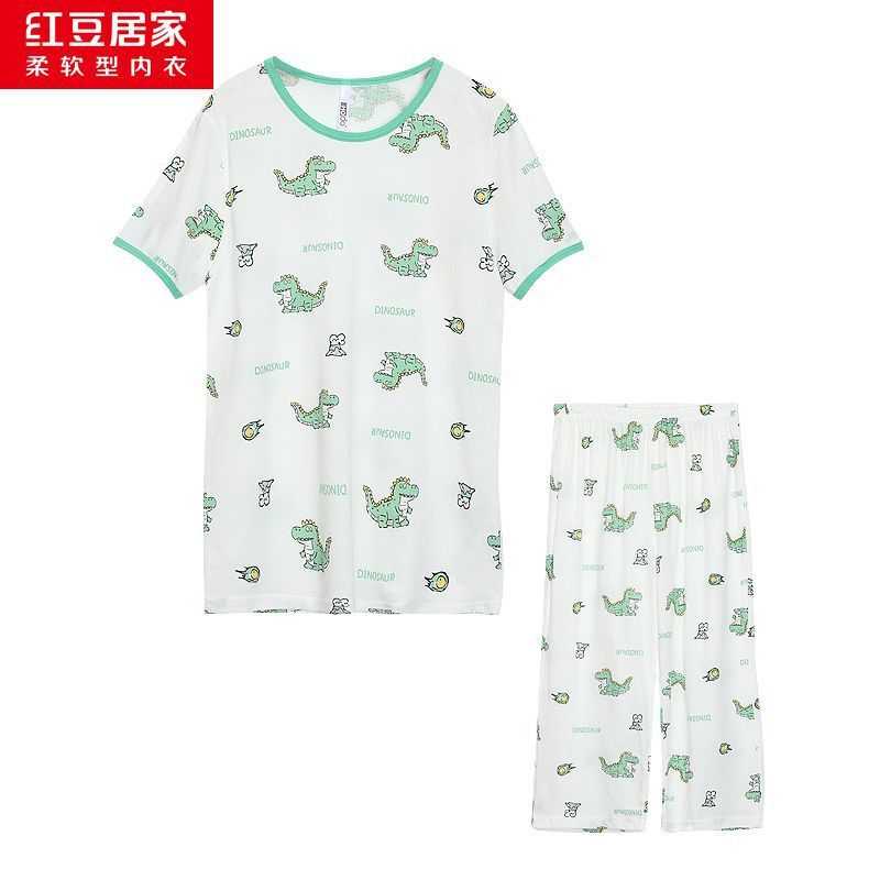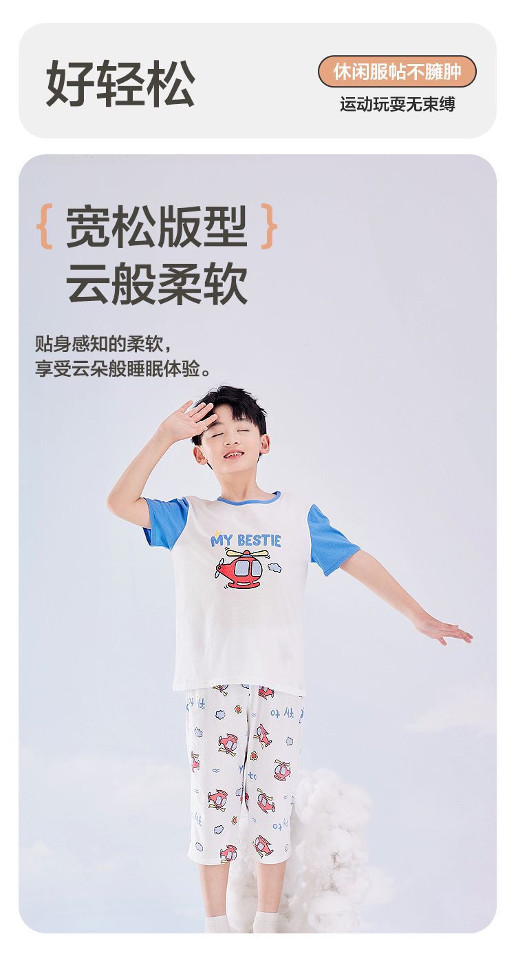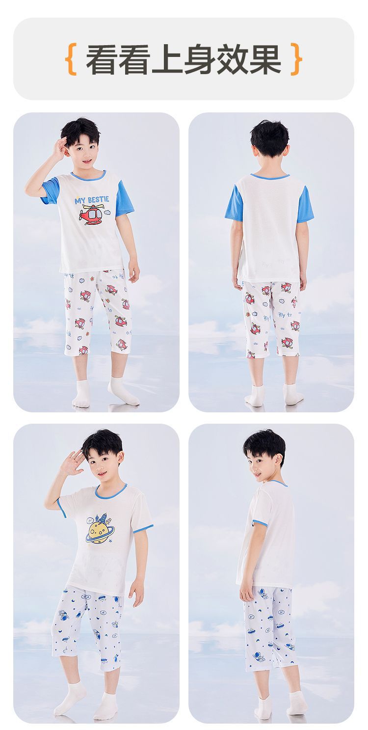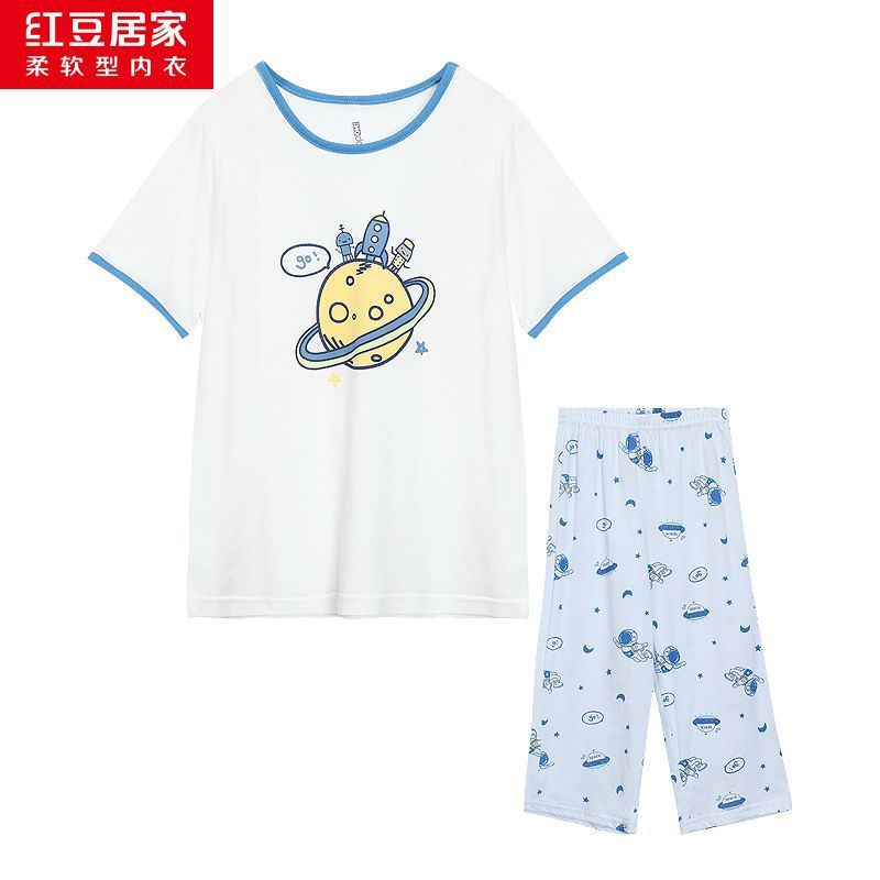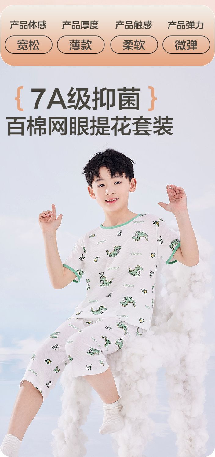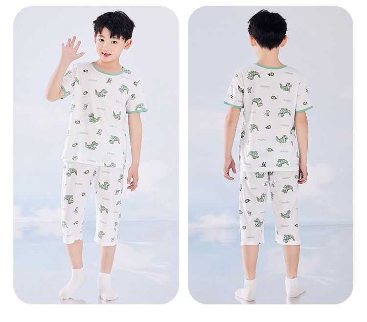 Hongdou Home 7A 등급 항균 면 소년 40S 메쉬 통기성 반팔 7 점 바지 잠옷 홈웨어 세트