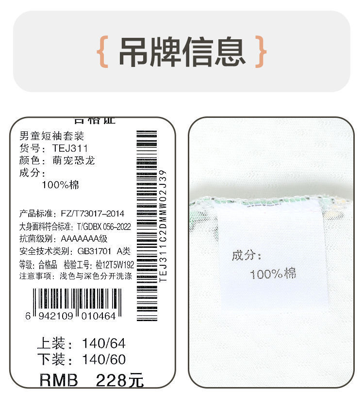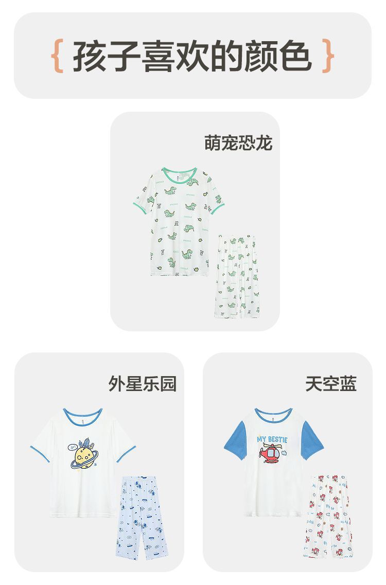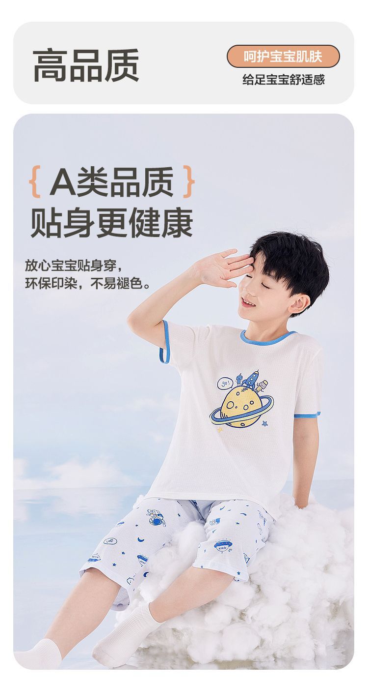 Hongdou Home 7A 등급 항균 면 소년 40S 메쉬 통기성 반팔 7 점 바지 잠옷 홈웨어 세트스토어 가기