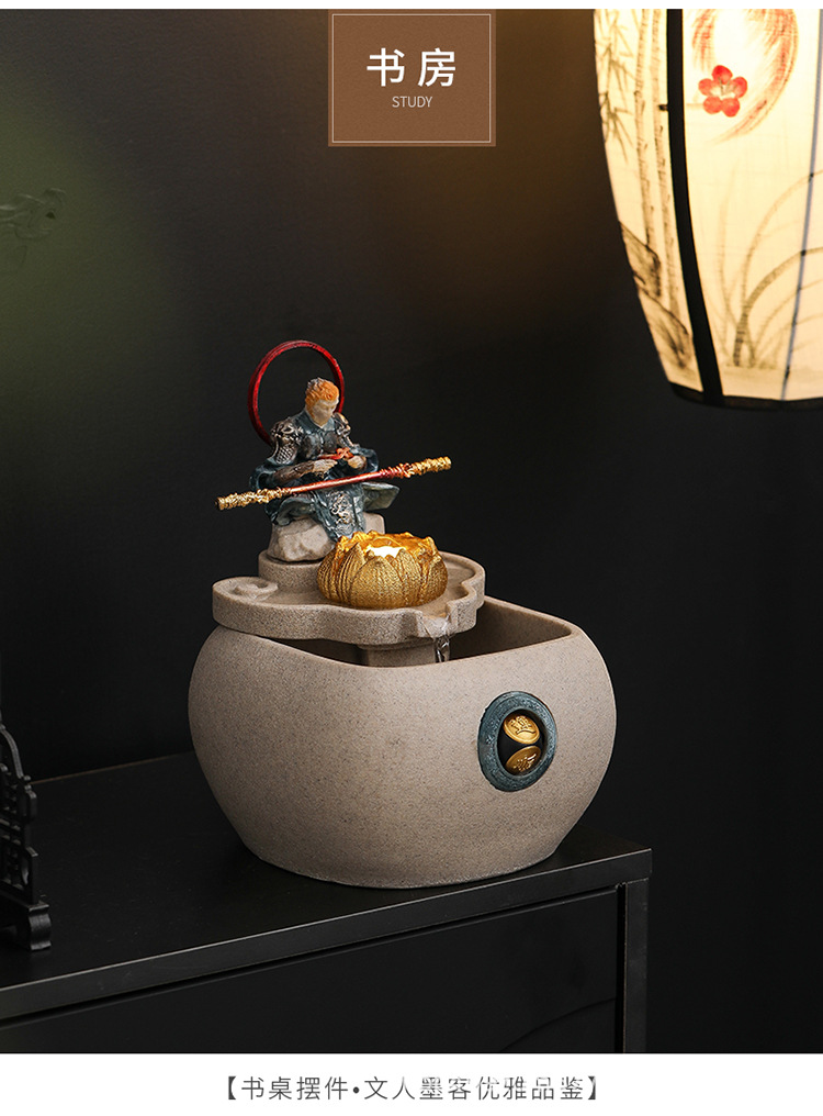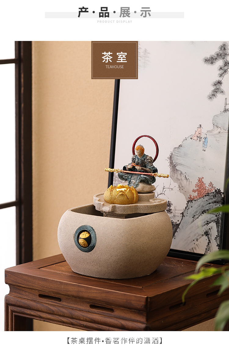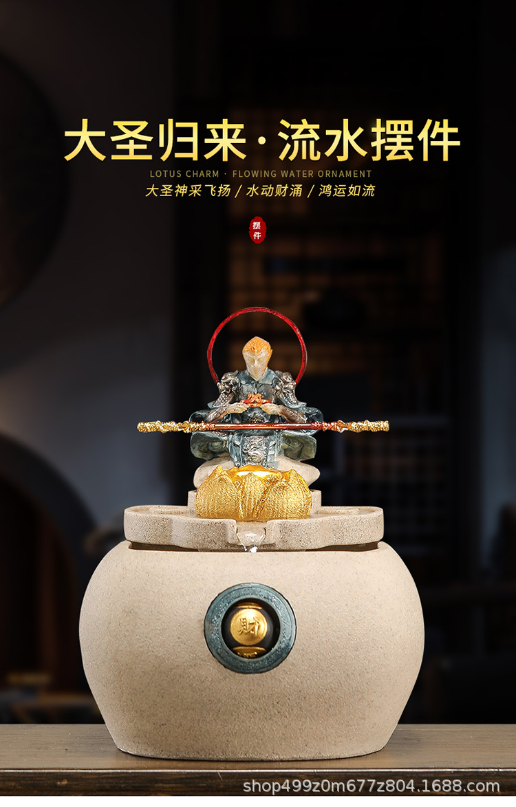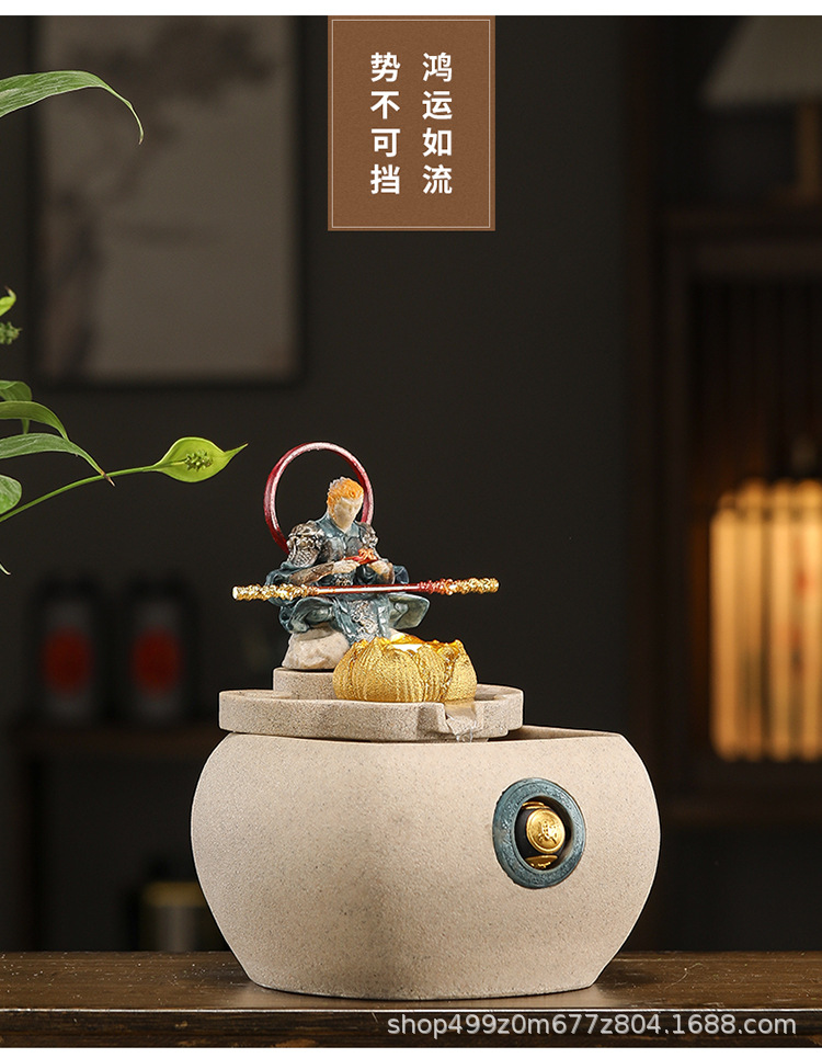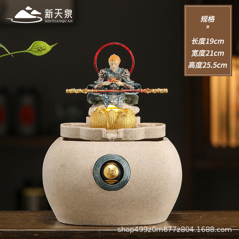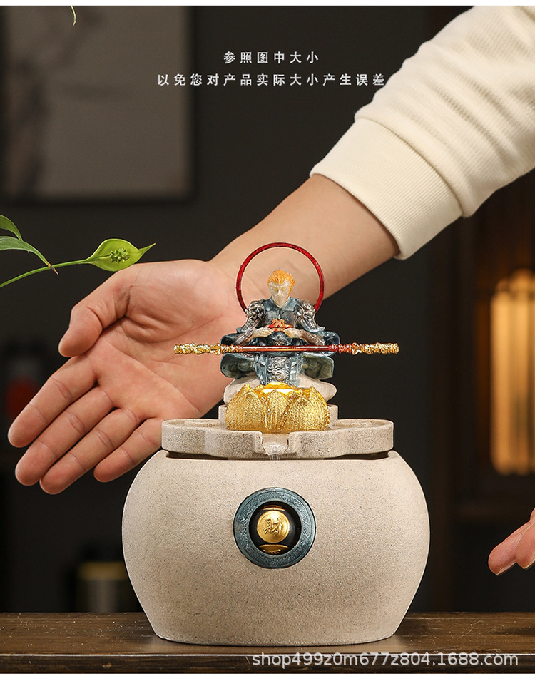 데스크탑 손오공 수상 장식품, 창의적인 가정용 소형 수조 순환수 손오공 장식품