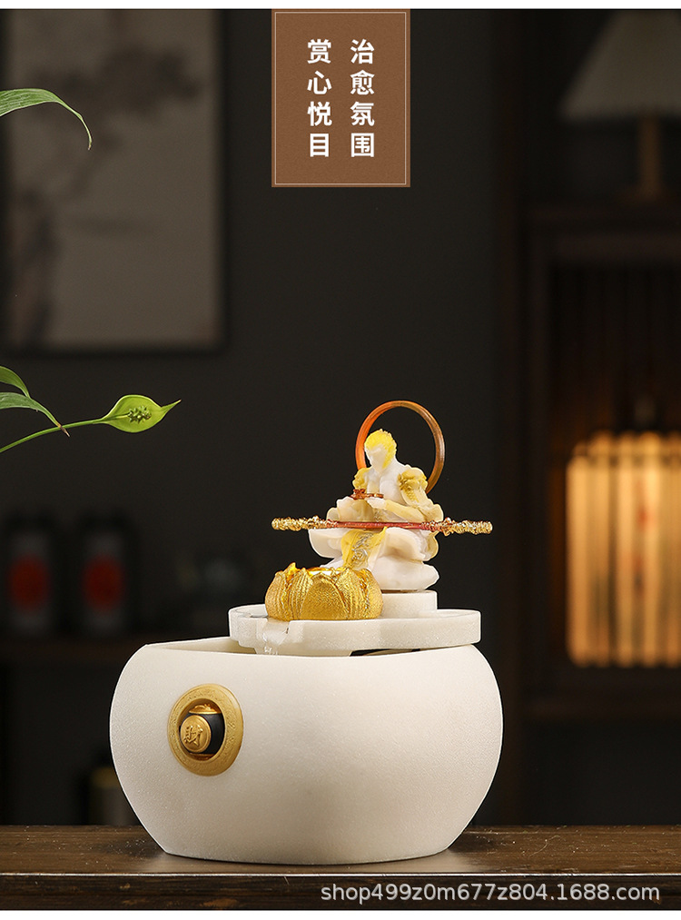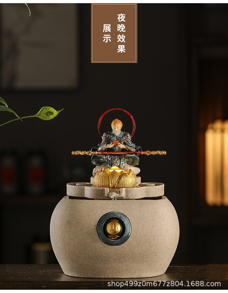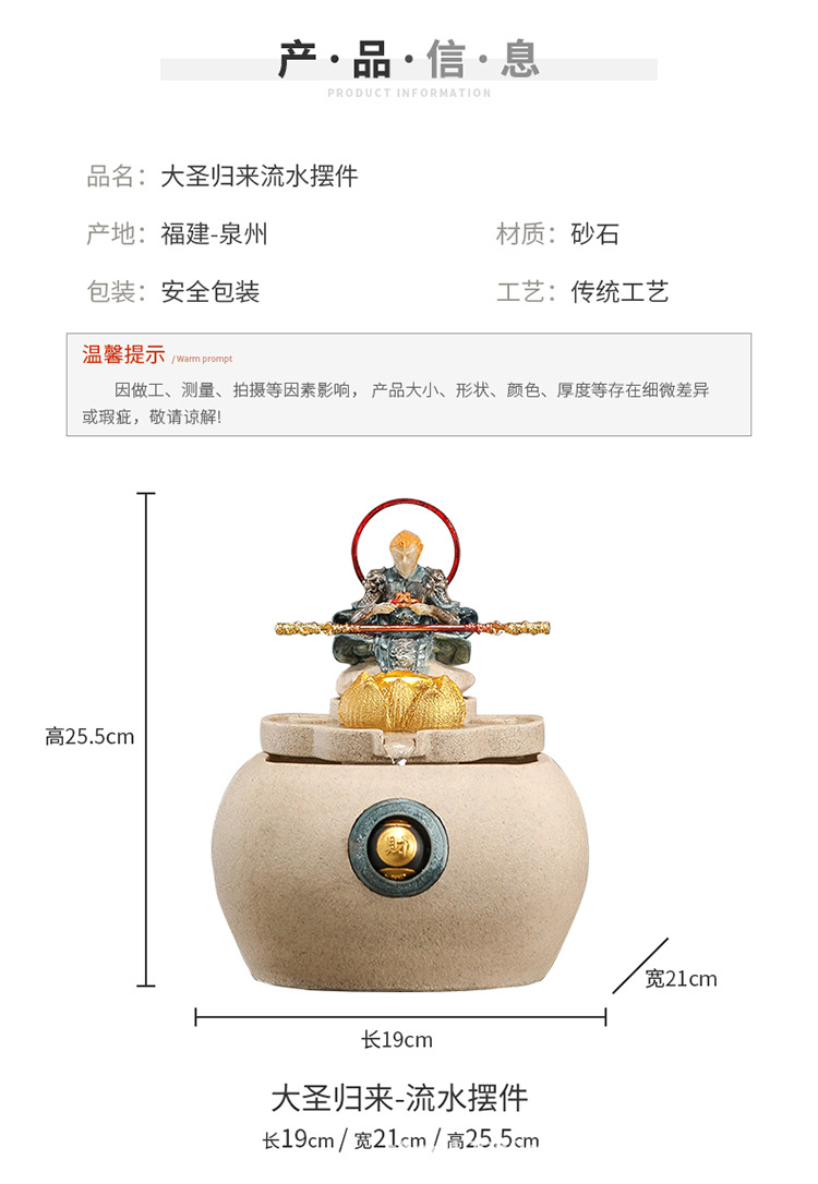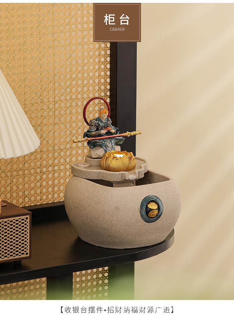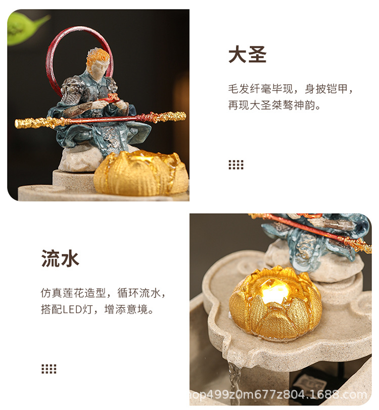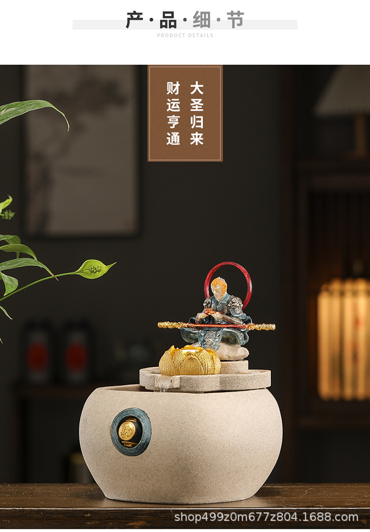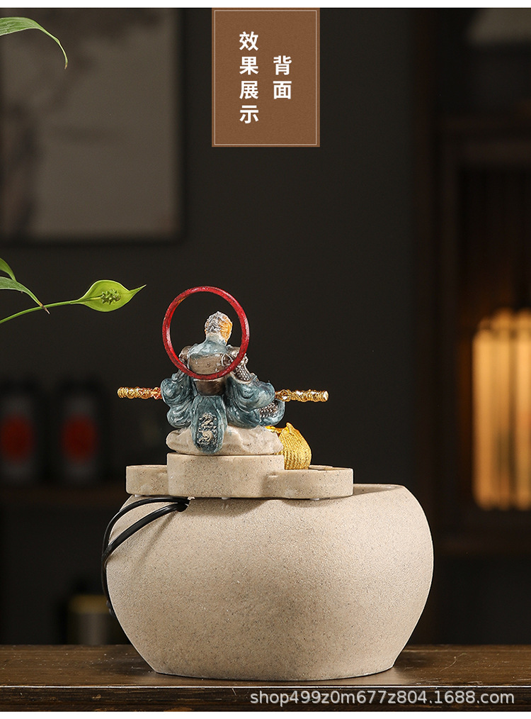데스크탑 손오공 수상 장식품, 창의적인 가정용 소형 수조 순환수 손오공 장식품