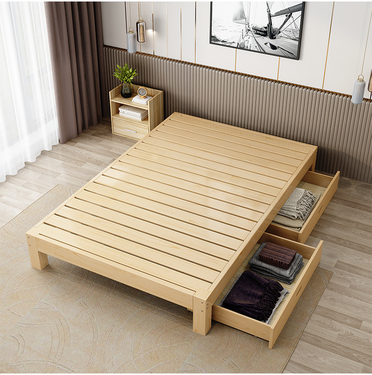 다다미 원목 침대 모던 심플 1.8 대형 침대 더블 침대 1.5m 침대 프레임 임대실 1.2m 싱글 1m