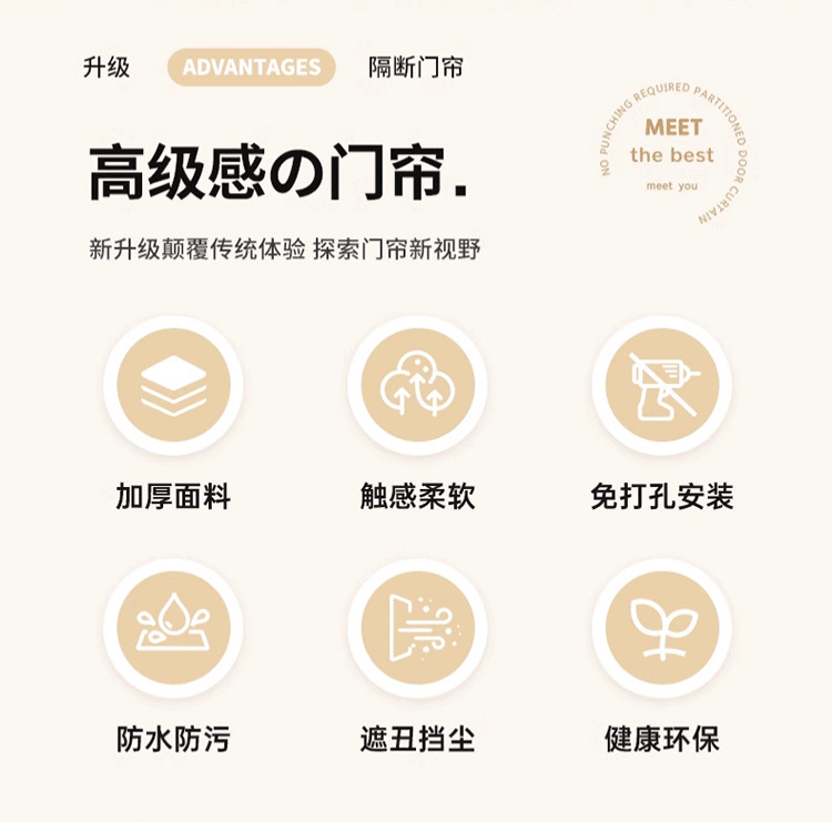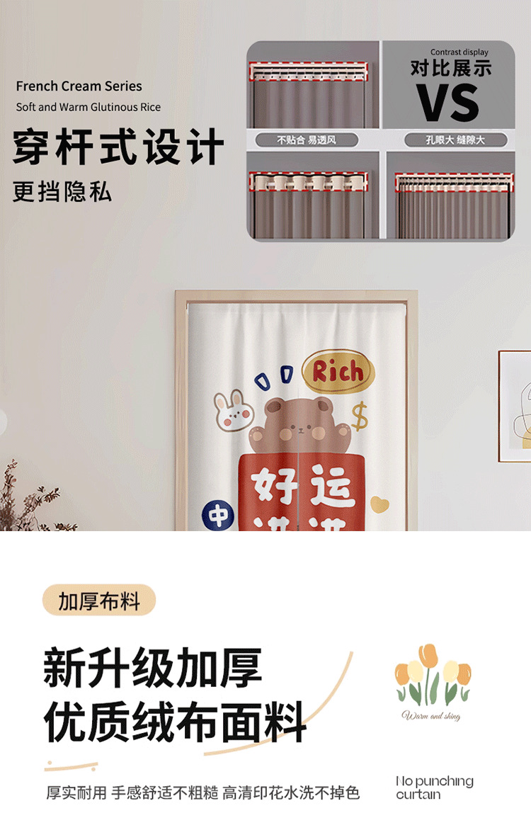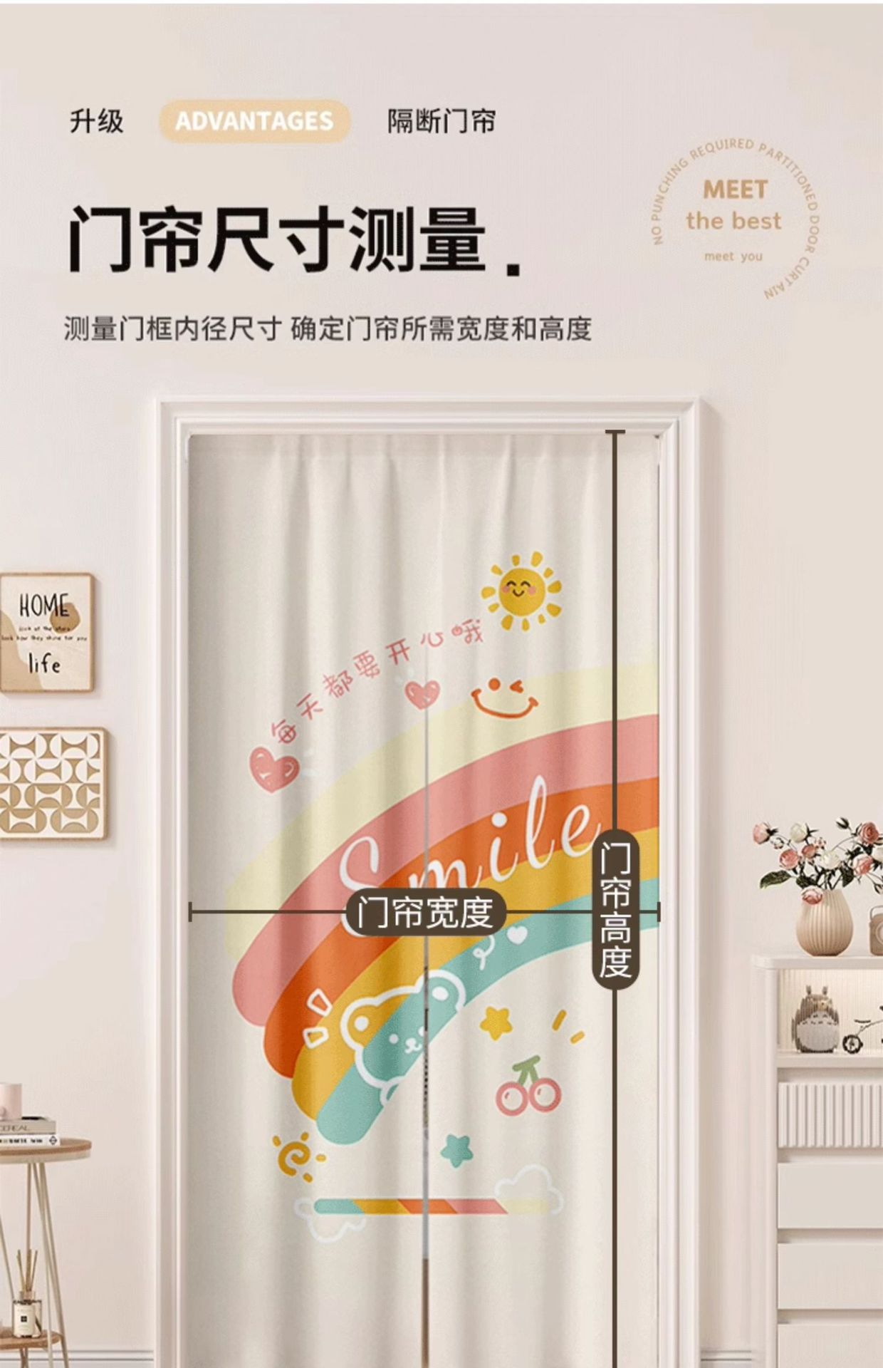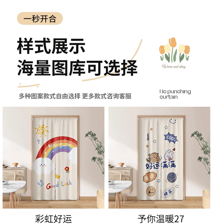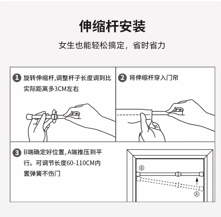 주방 도어 커튼, 파티션 커튼, 거실, 침실, 가정용 펀치 프리 도어 커튼, 텔레스코픽 막대 커튼스토어 가기
