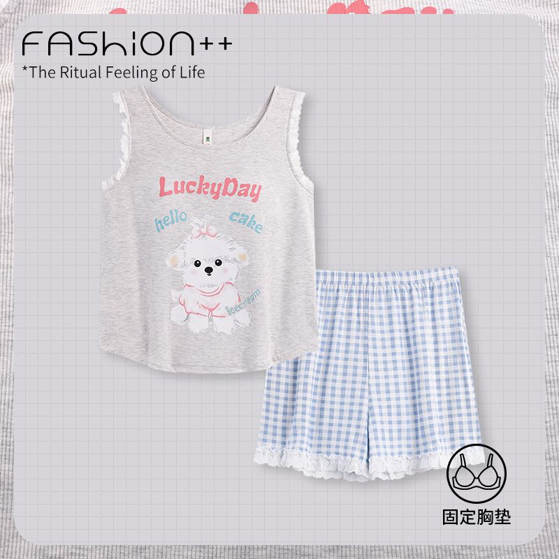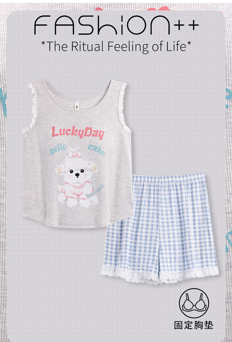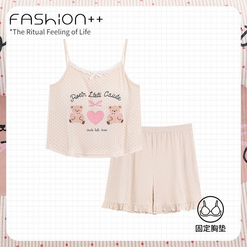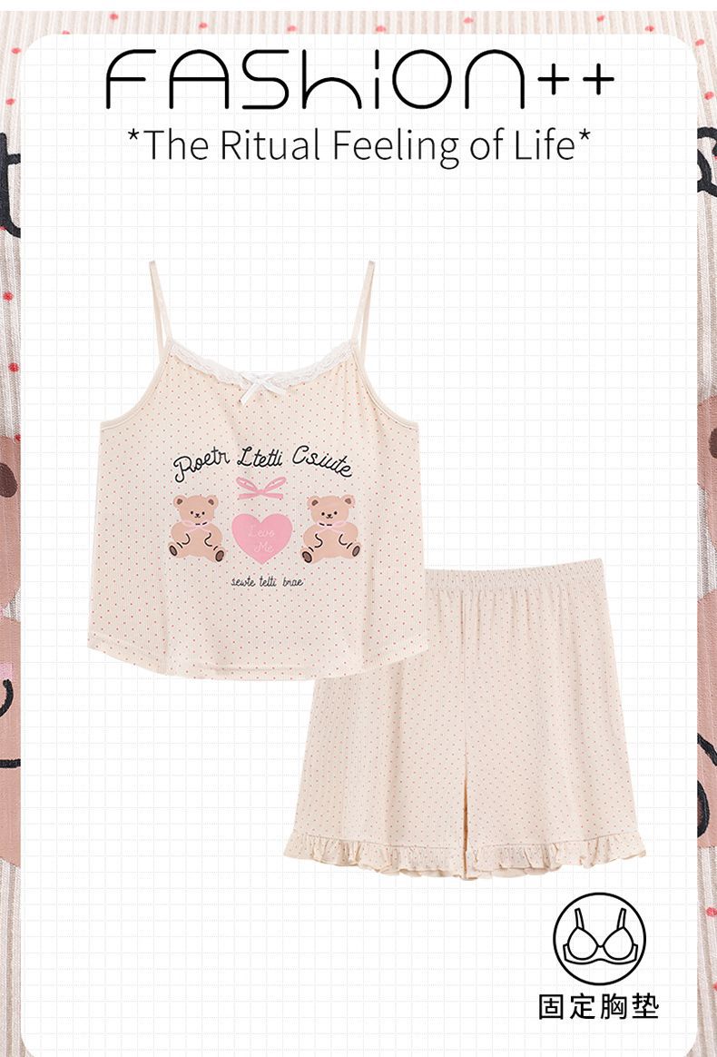 여성을위한 여름 귀여운 서스펜더 잠옷 2025 새로운 스타일 조끼 느슨한 만화 달콤하고 편안한 가정 의류 가슴 패드스토어 가기
