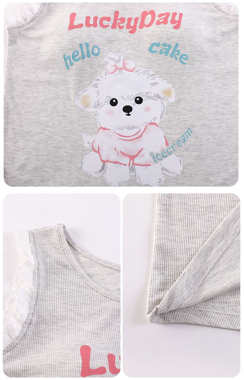 여성을위한 여름 귀여운 서스펜더 잠옷 2025 새로운 스타일 조끼 느슨한 만화 달콤하고 편안한 가정 의류 가슴 패드