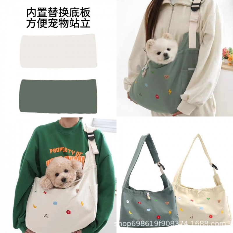 한국 애완 동물 용품 개 귀여운 수 놓은 복고풍 어깨 크로스 바디 백 조절 가능한 보관 애완 동물 외출 가방스토어 가기