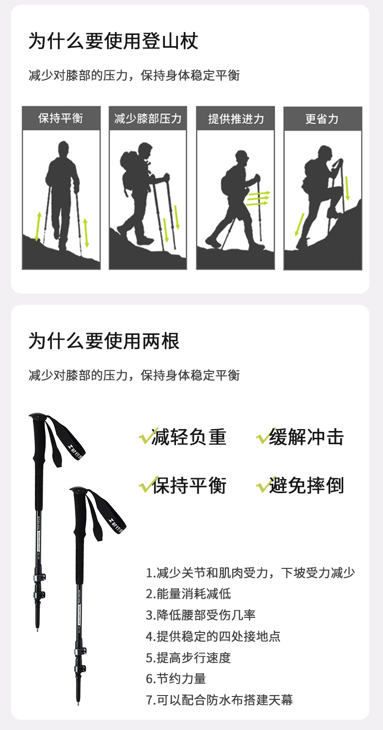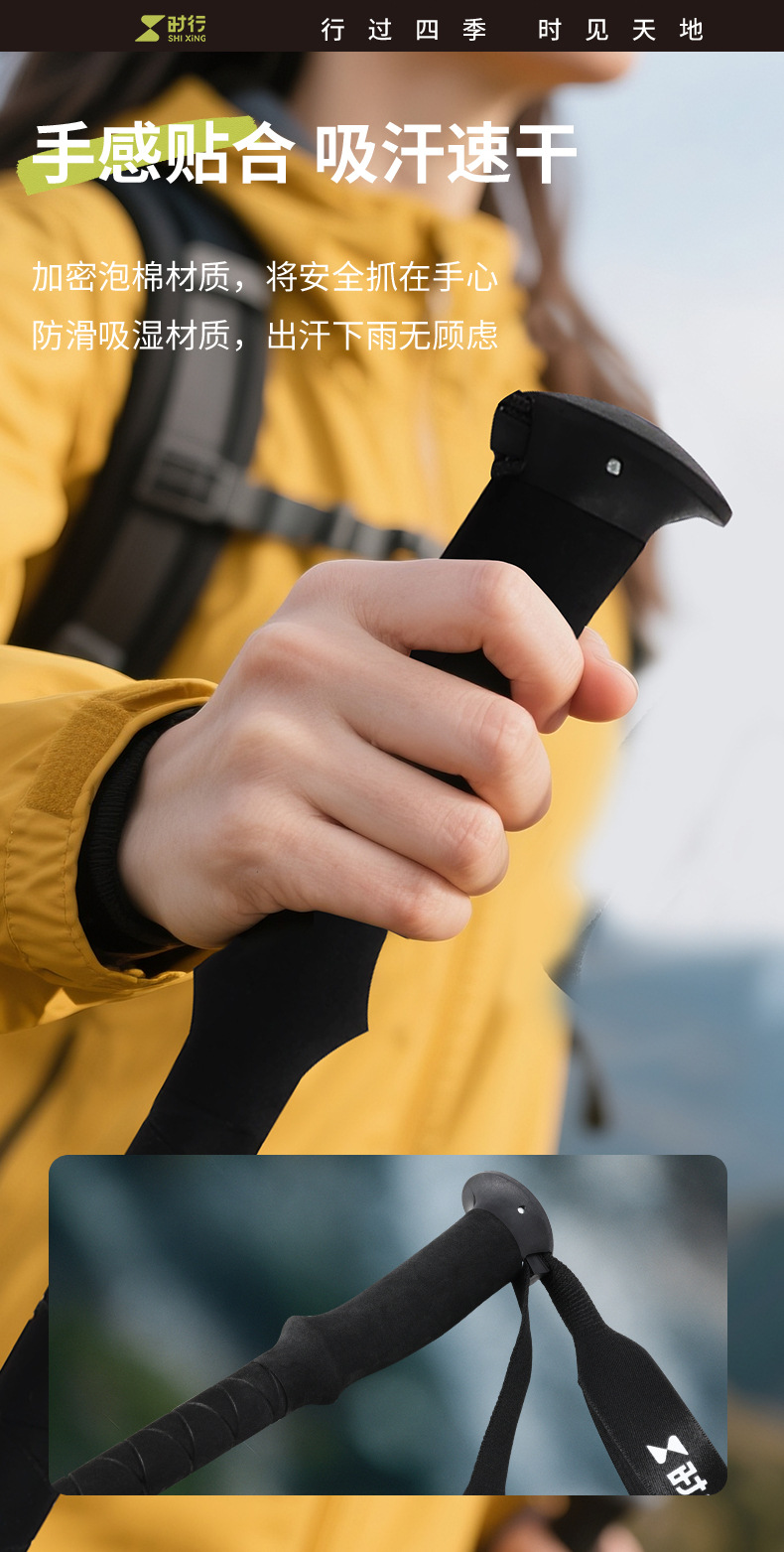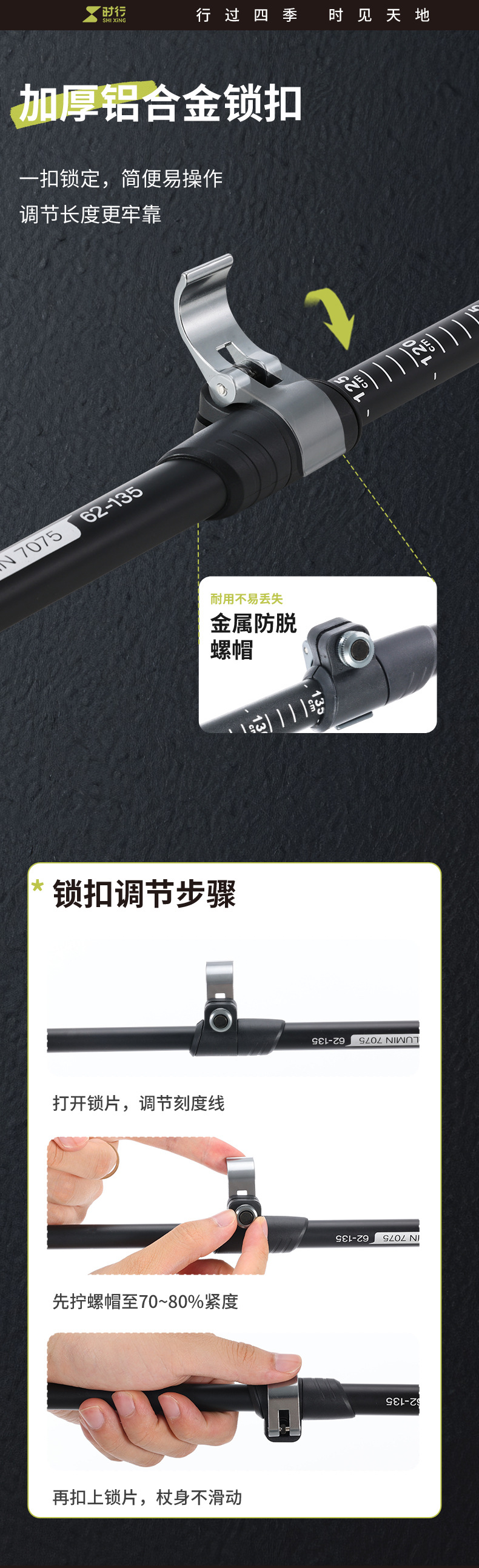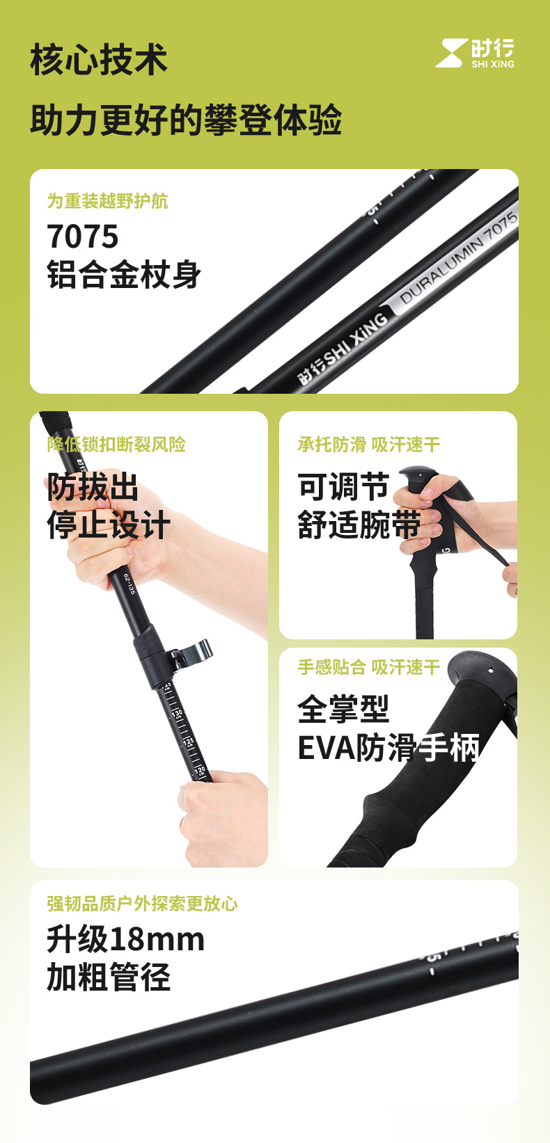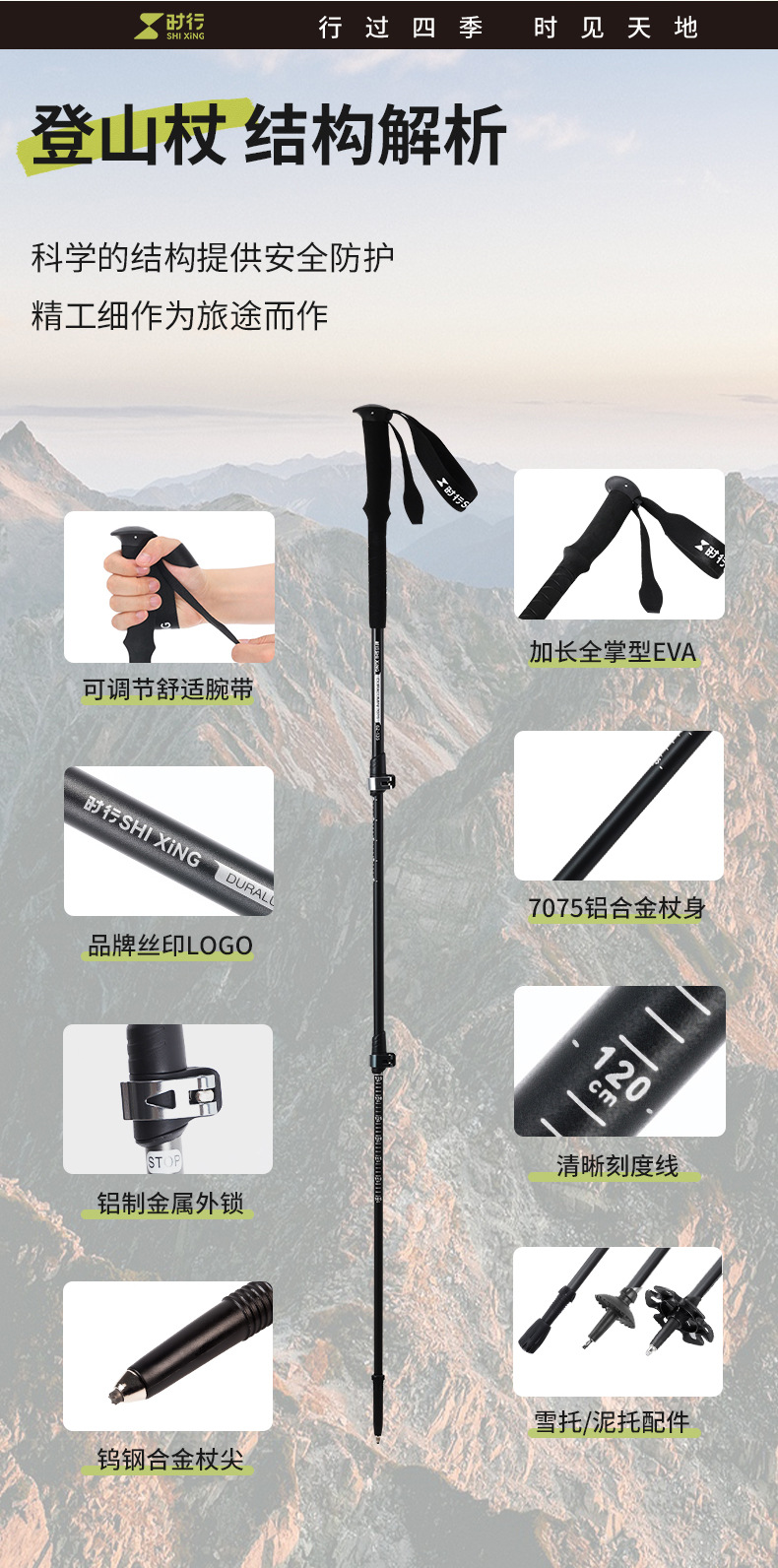 엄선된 7075 알루미늄 합금 등산 스틱, 외부 잠금 기능, 전문 야외 등산용, 접이식, 초경량, 신축성, 남녀 공용스토어 가기