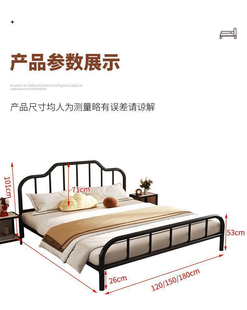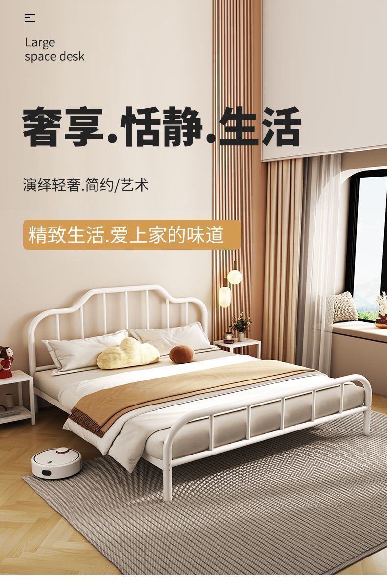 침실 철제 침대 북유럽 스타일 두꺼운 두꺼운 1.8m 더블 침대 간단한 현대 철제 프레임 침대 홈 임대스토어 가기