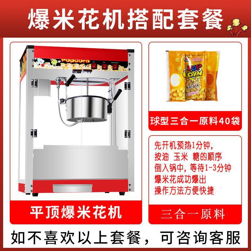 • 플랫탑 팝콘 기계 + 선물 + 구형 원료 조합 패키지