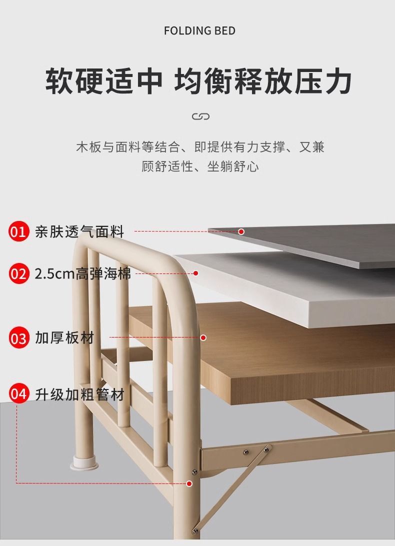 접이식 침대 싱글 침대 점심 시간 낮잠 사무실 집 성인 기숙사 간이 임대 집 강화 철제 침대 작은 침대