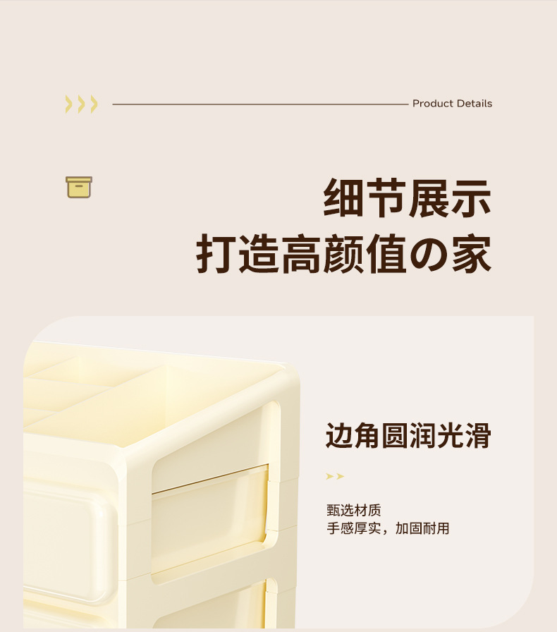 • 경사진 상단 수납공간을 갖춘 크림색 4단 키가 큰 병