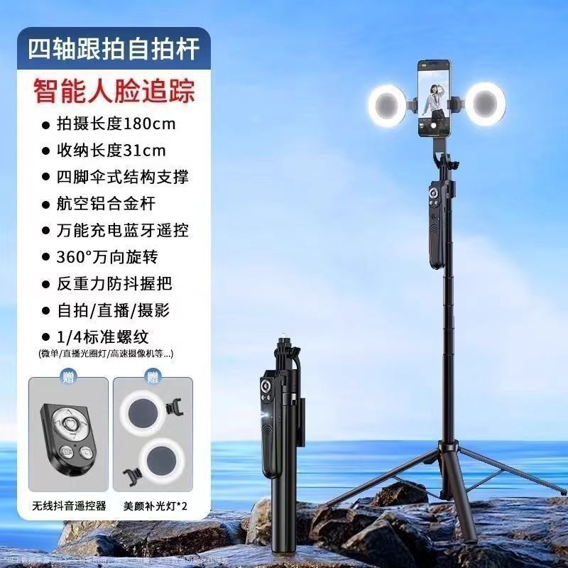 4족 셀카봉, AI 지능형 추적, 다기능 휴대폰 홀더, 바닥에서 야외까지 360도 회전 얼굴 추적
