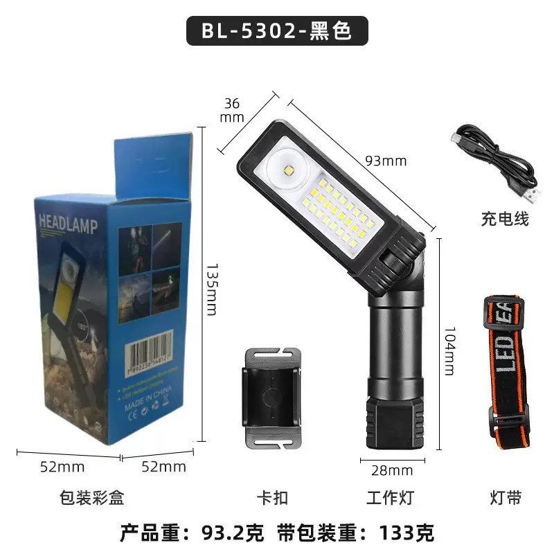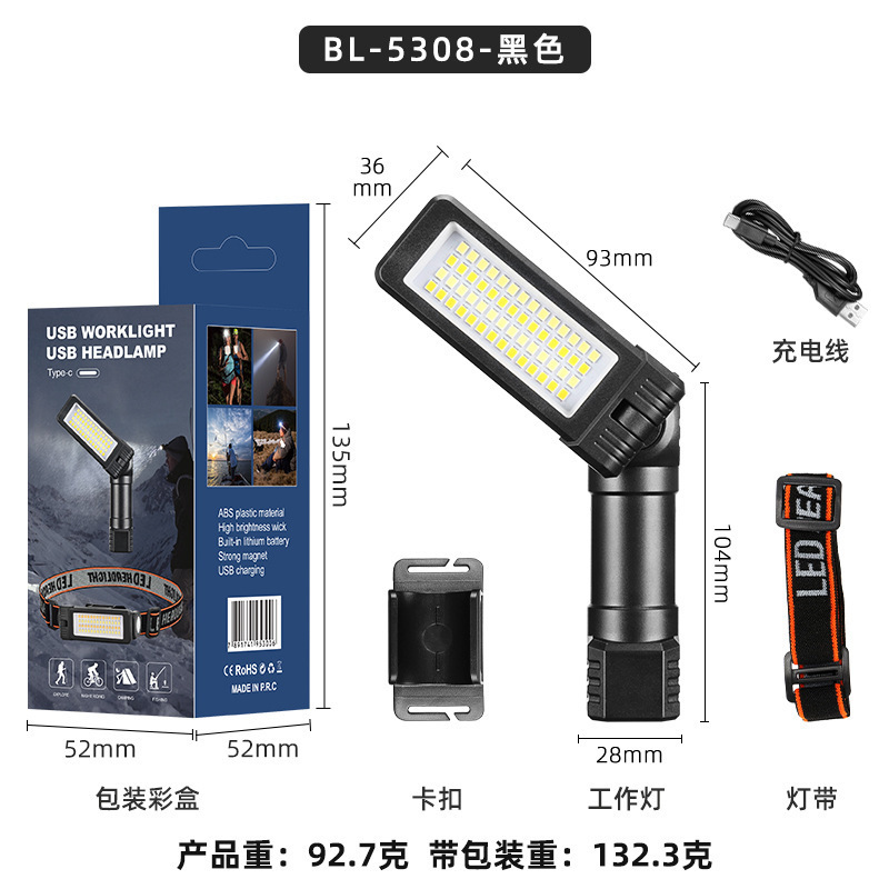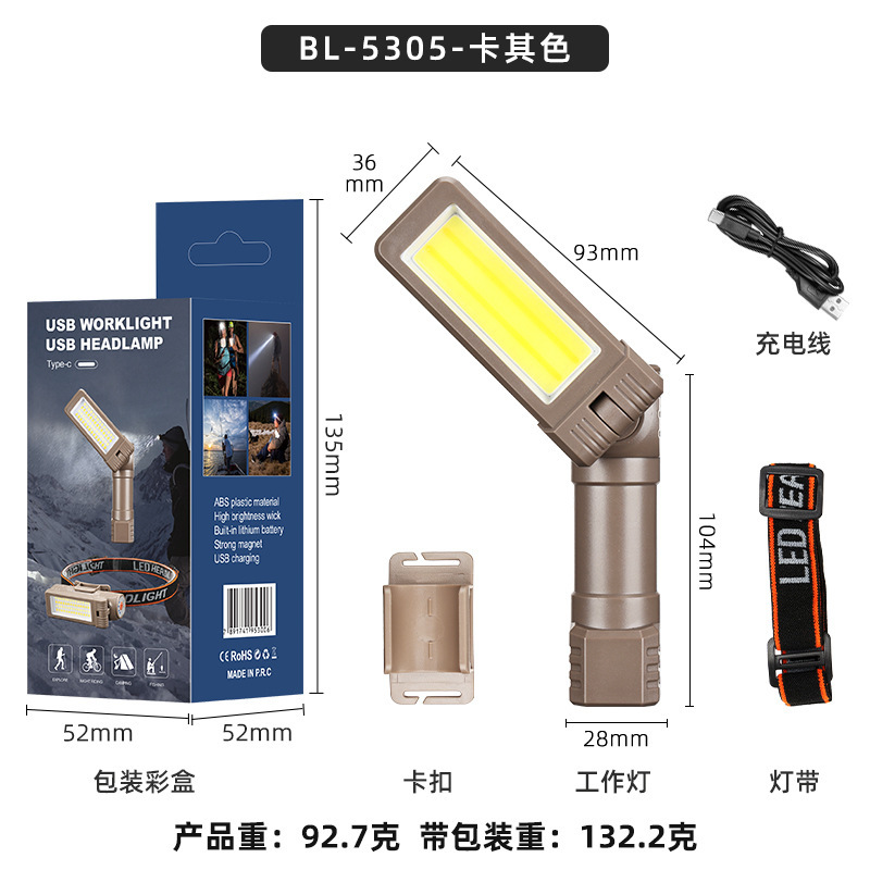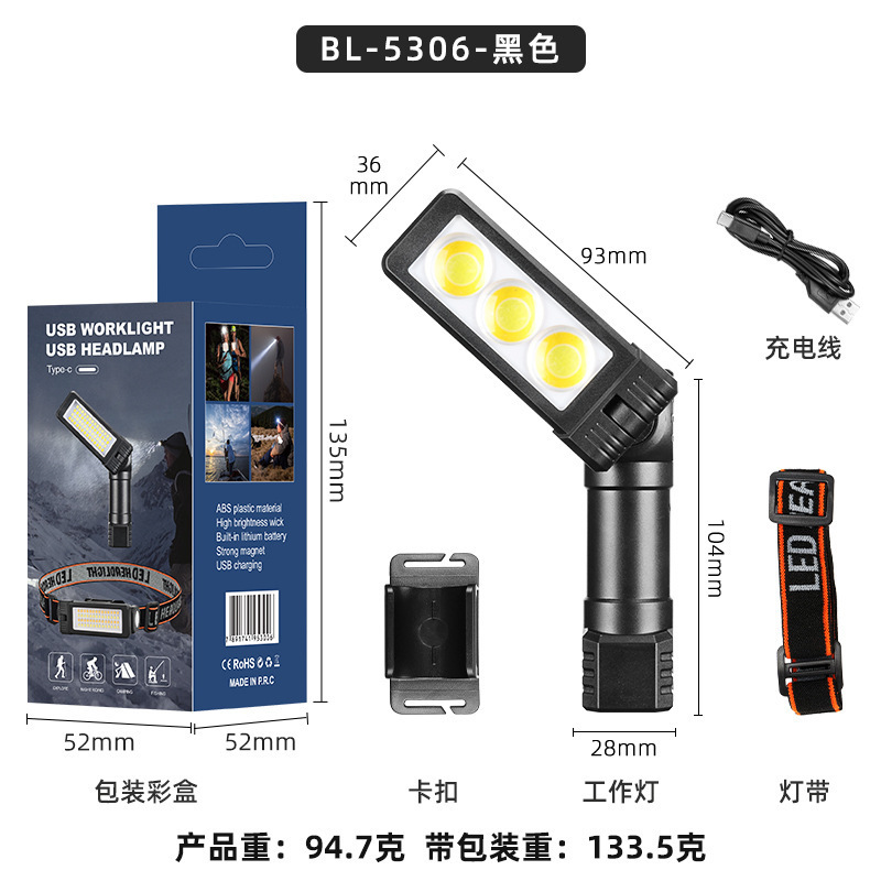 다기능 이중 목적 작업 조명, 실외 헤드라이트, 긴 배터리 수명, 리튬 배터리, COB 밝은 손전등, 충전식, 높은 루멘