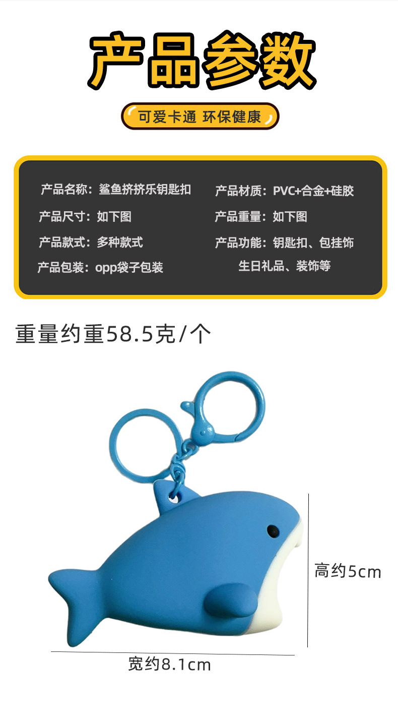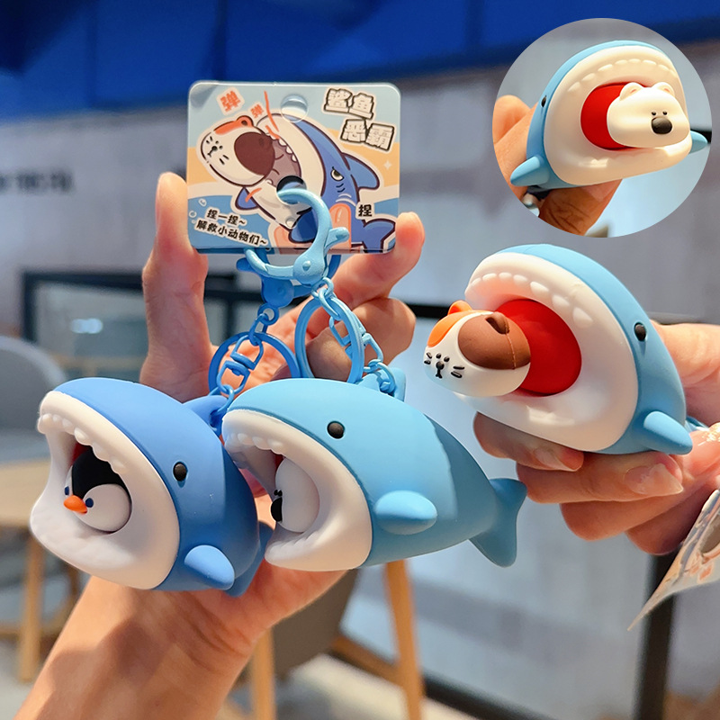 창의적인 새로운 제품 감압 정품 상어가 온다 스퀴즈 장난감 열쇠 고리 여성 귀여운 아기 인형 가방 펜던트스토어 가기