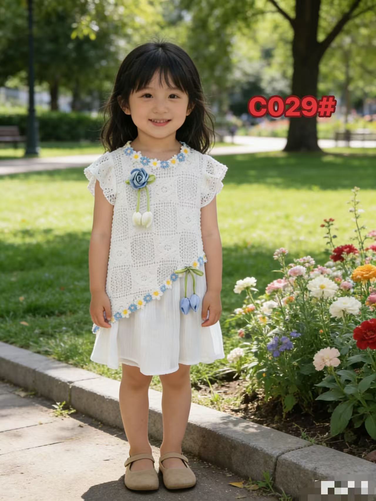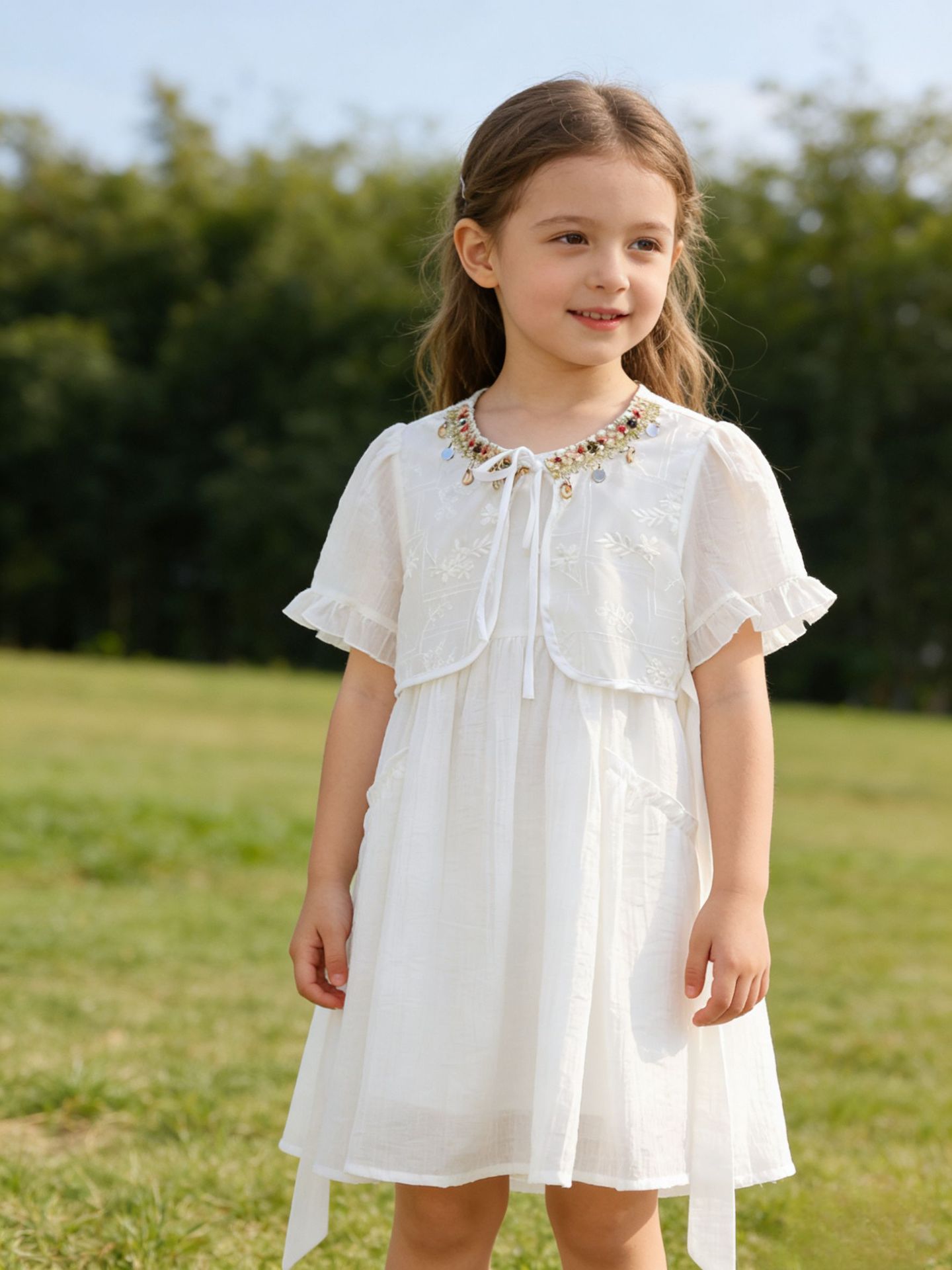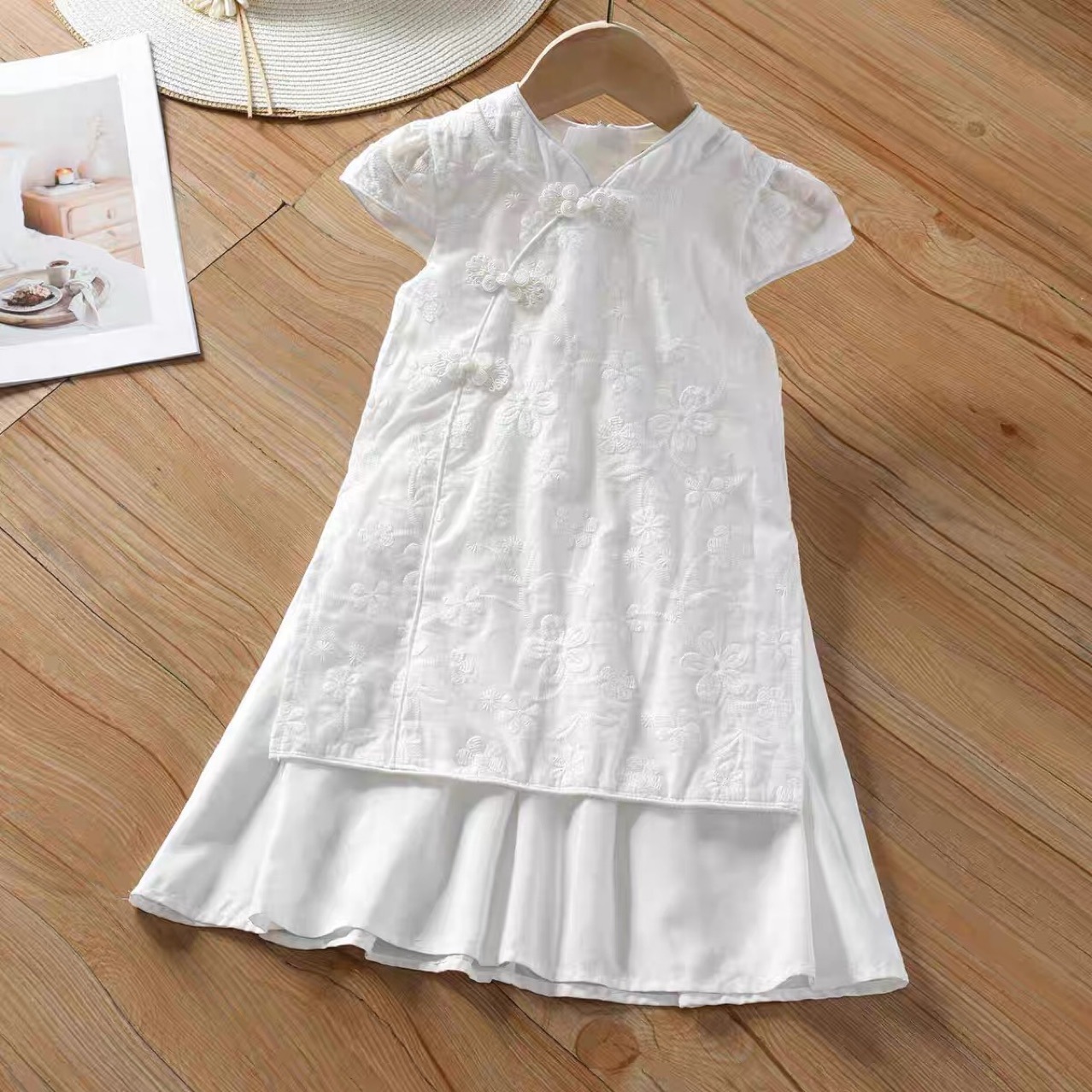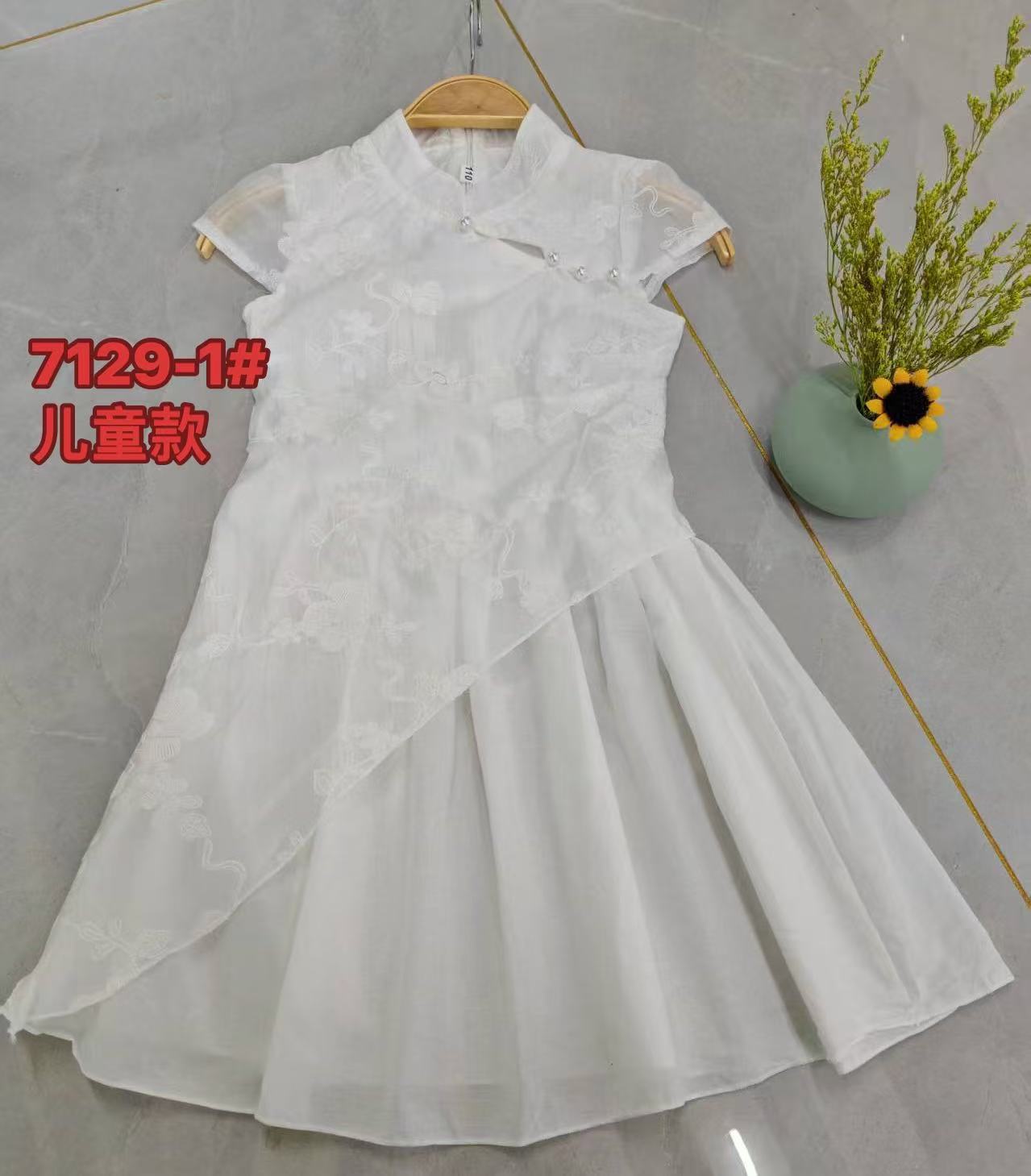 어린이 민족 스타일 타이 염색 흰색 배아 서스펜더 드레스 소녀 서스펜더 드레스 도매