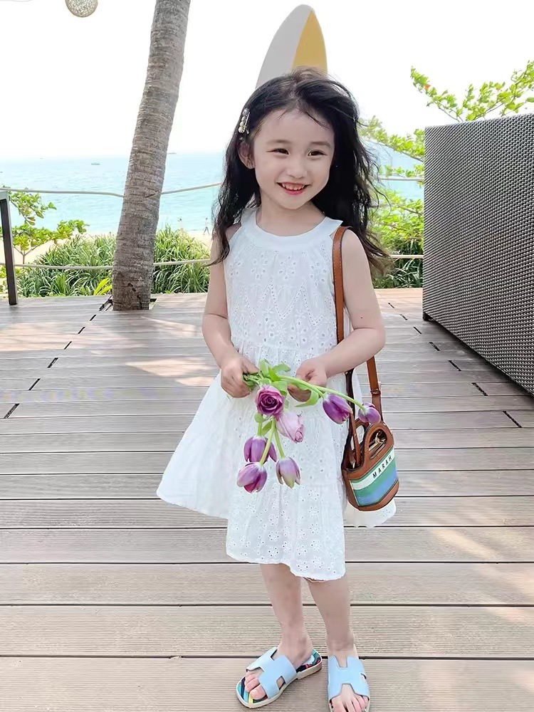 어린이 민족 스타일 타이 염색 흰색 배아 서스펜더 드레스 소녀 서스펜더 드레스 도매스토어 가기