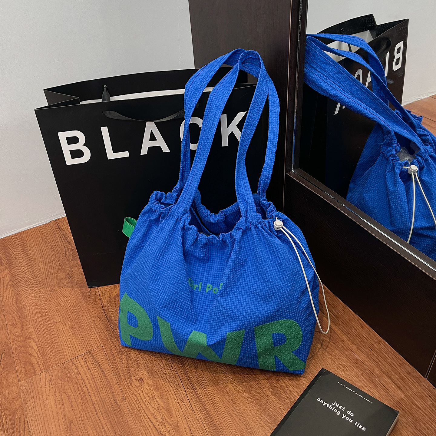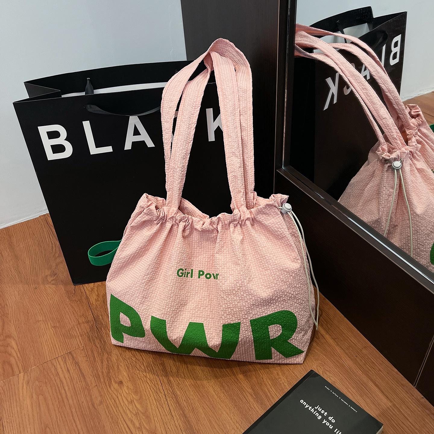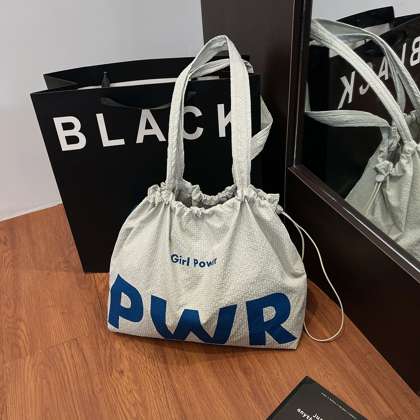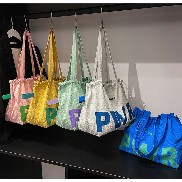 대용량 가방 여성용 숄더백 드로스트링 디자인 토트 백 캐주얼 나일론 가방 휴가 및 여행 다용도 가방스토어 가기