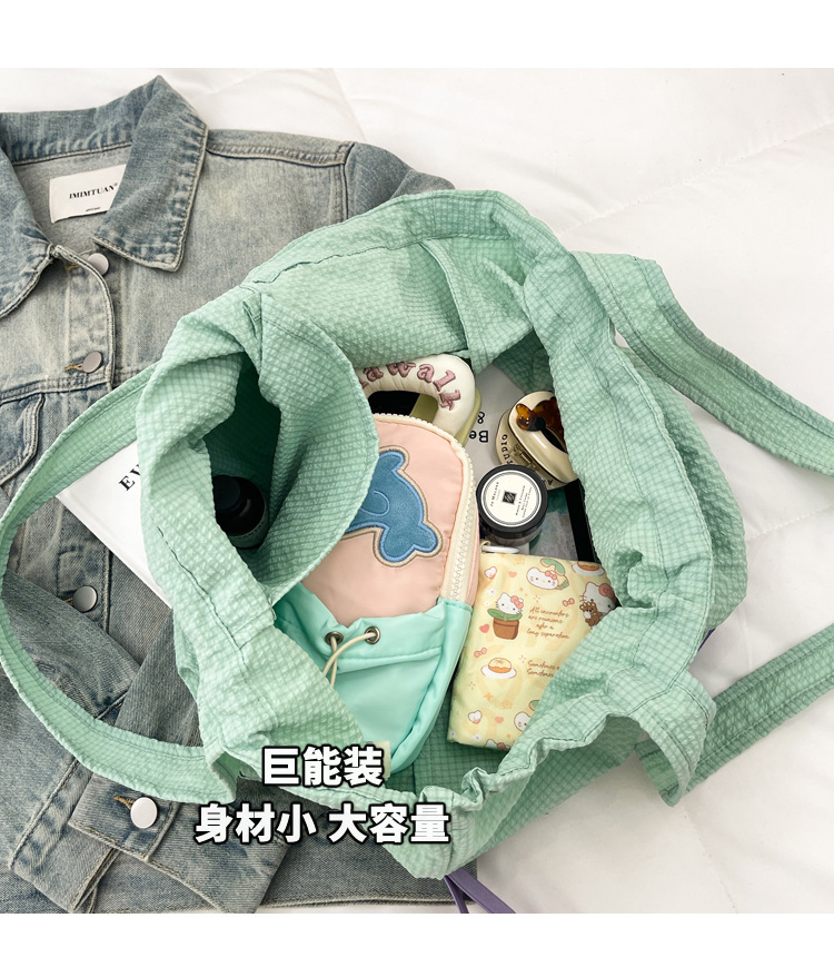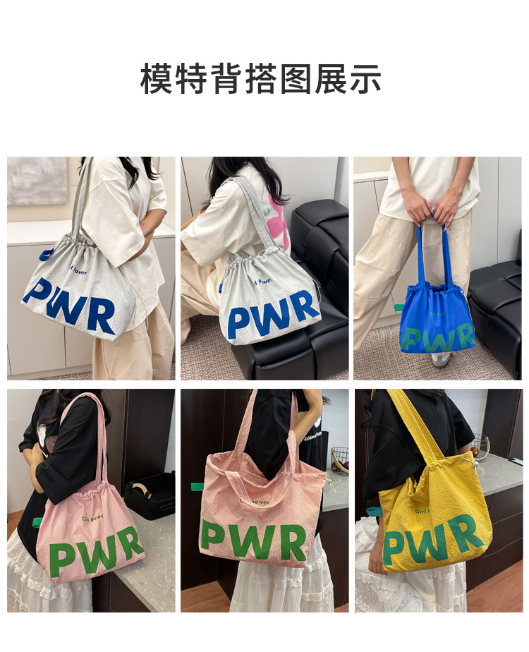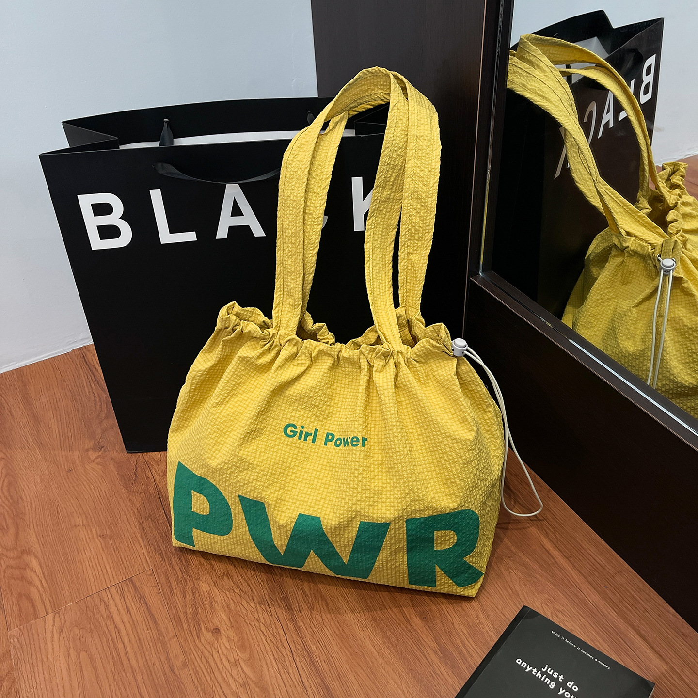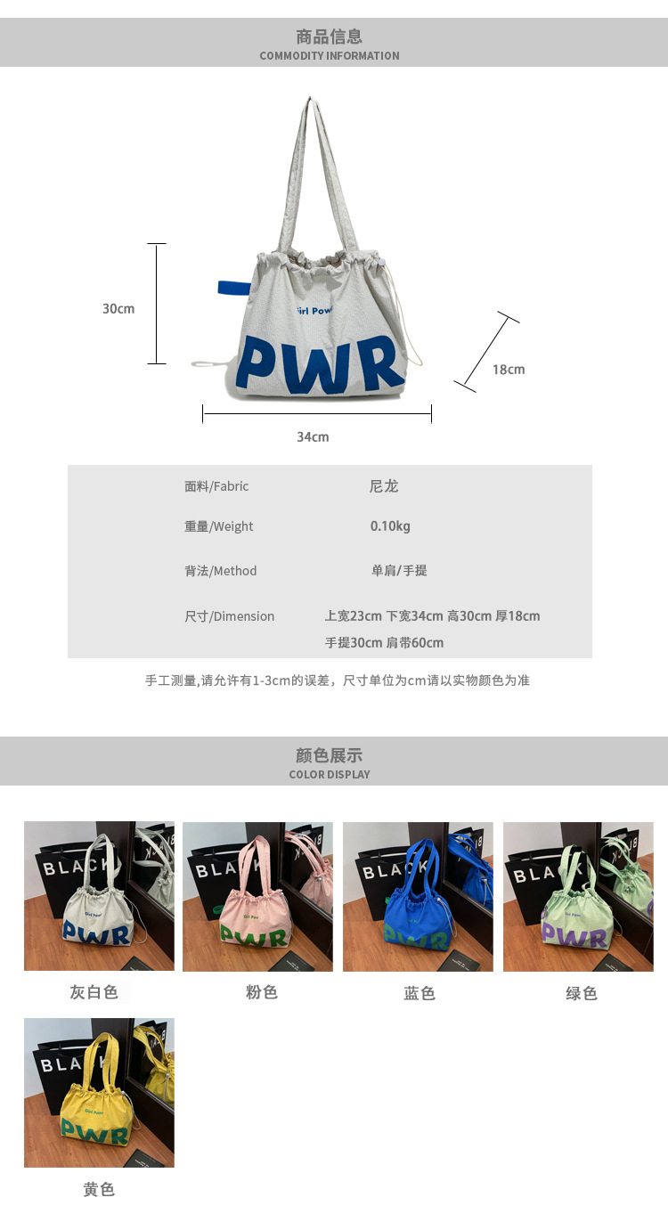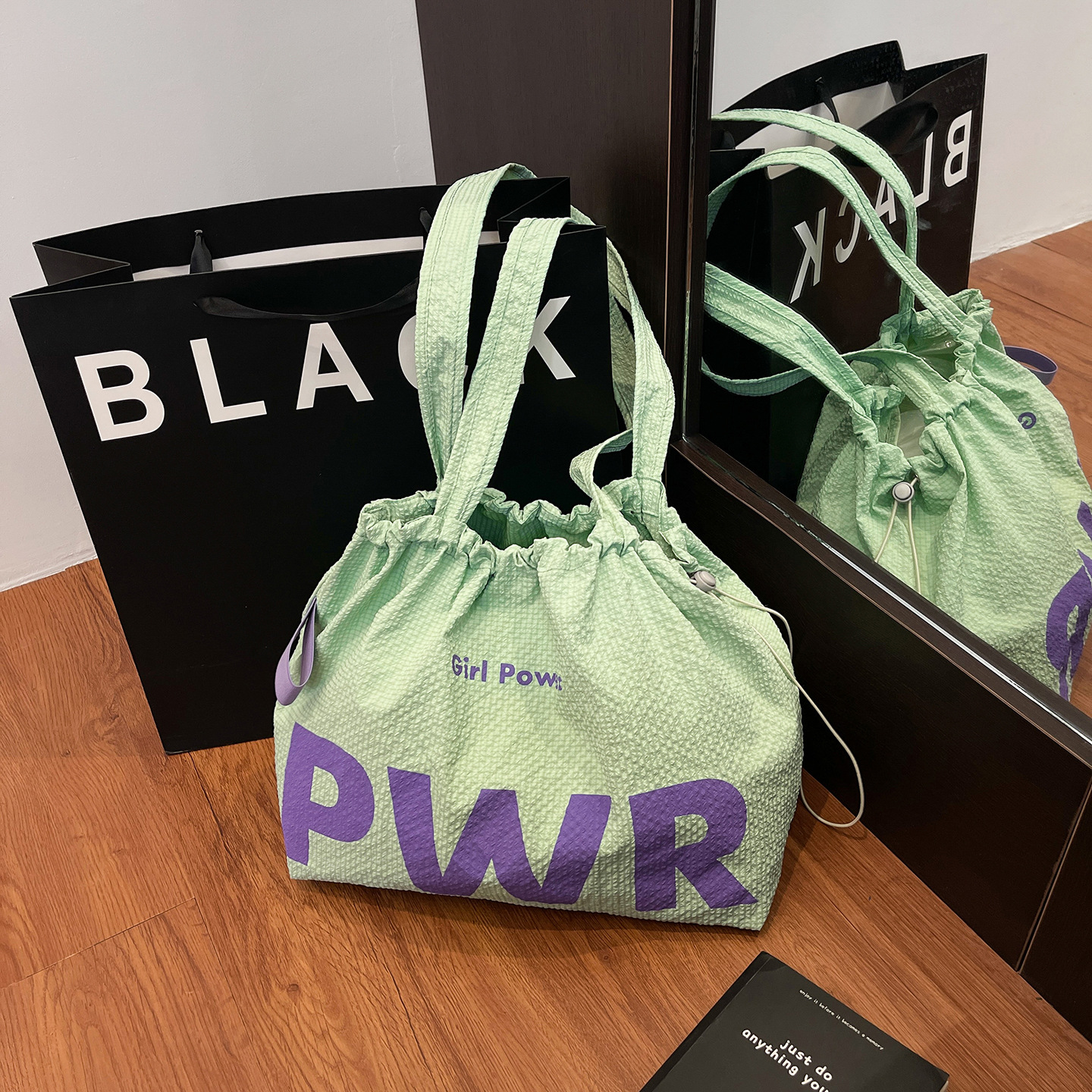 대용량 가방 여성용 숄더백 드로스트링 디자인 토트 백 캐주얼 나일론 가방 휴가 및 여행 다용도 가방스토어 가기