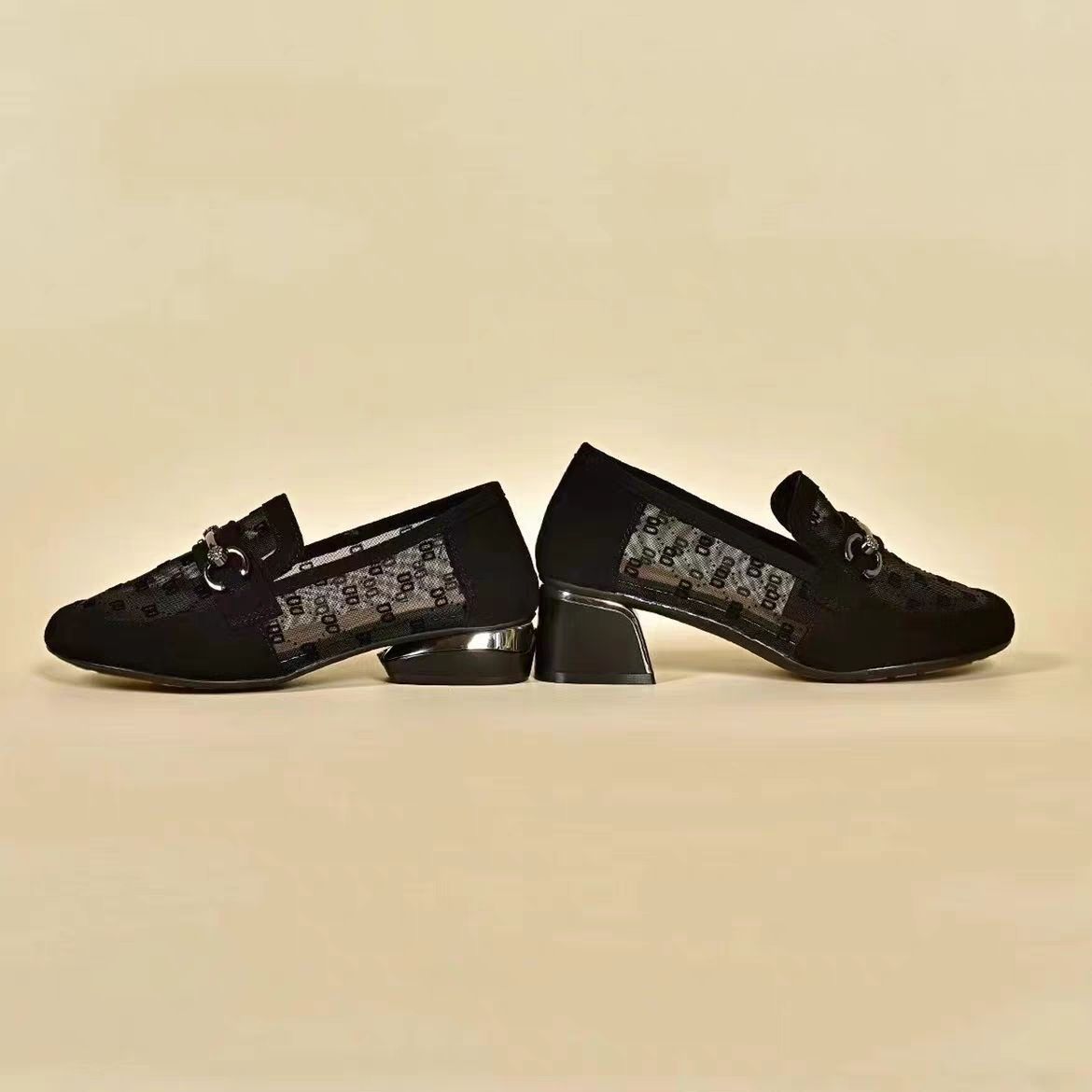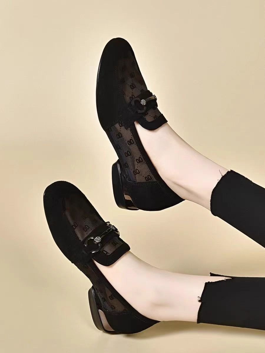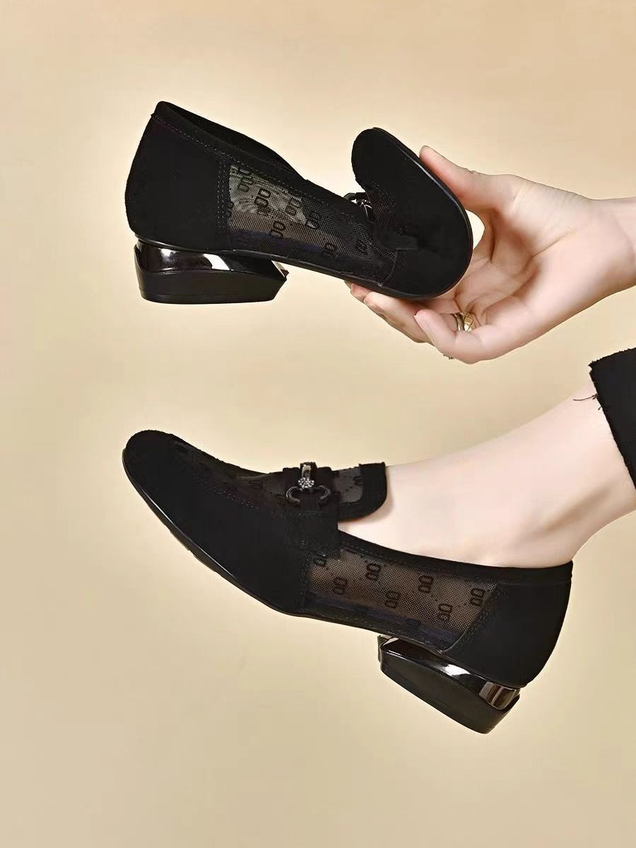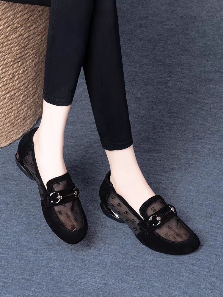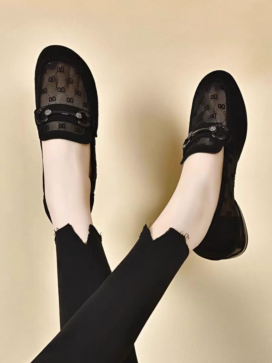 여성을위한 메쉬 로퍼 2025 여름 새로운 라운드 발가락 부드러운 단독 신발 두꺼운 굽 중공 통기성 탈취제 쿨 슈즈스토어 가기