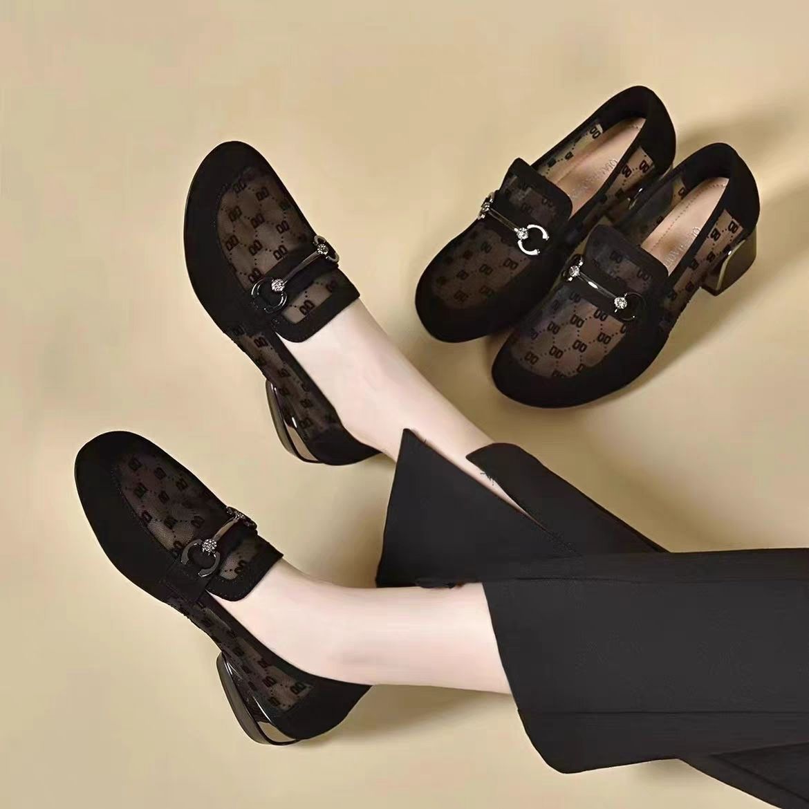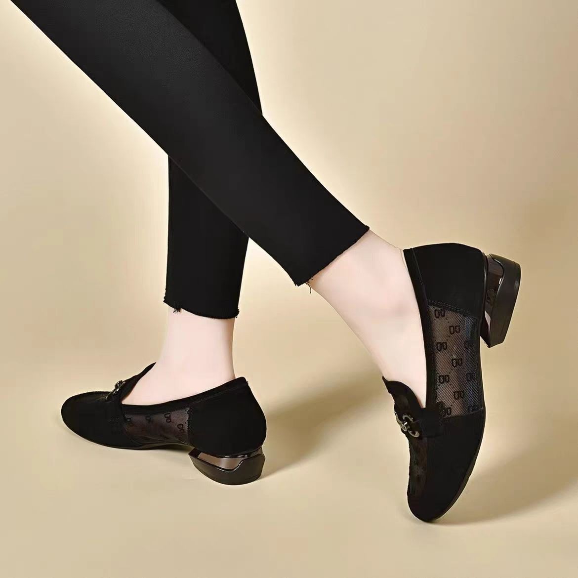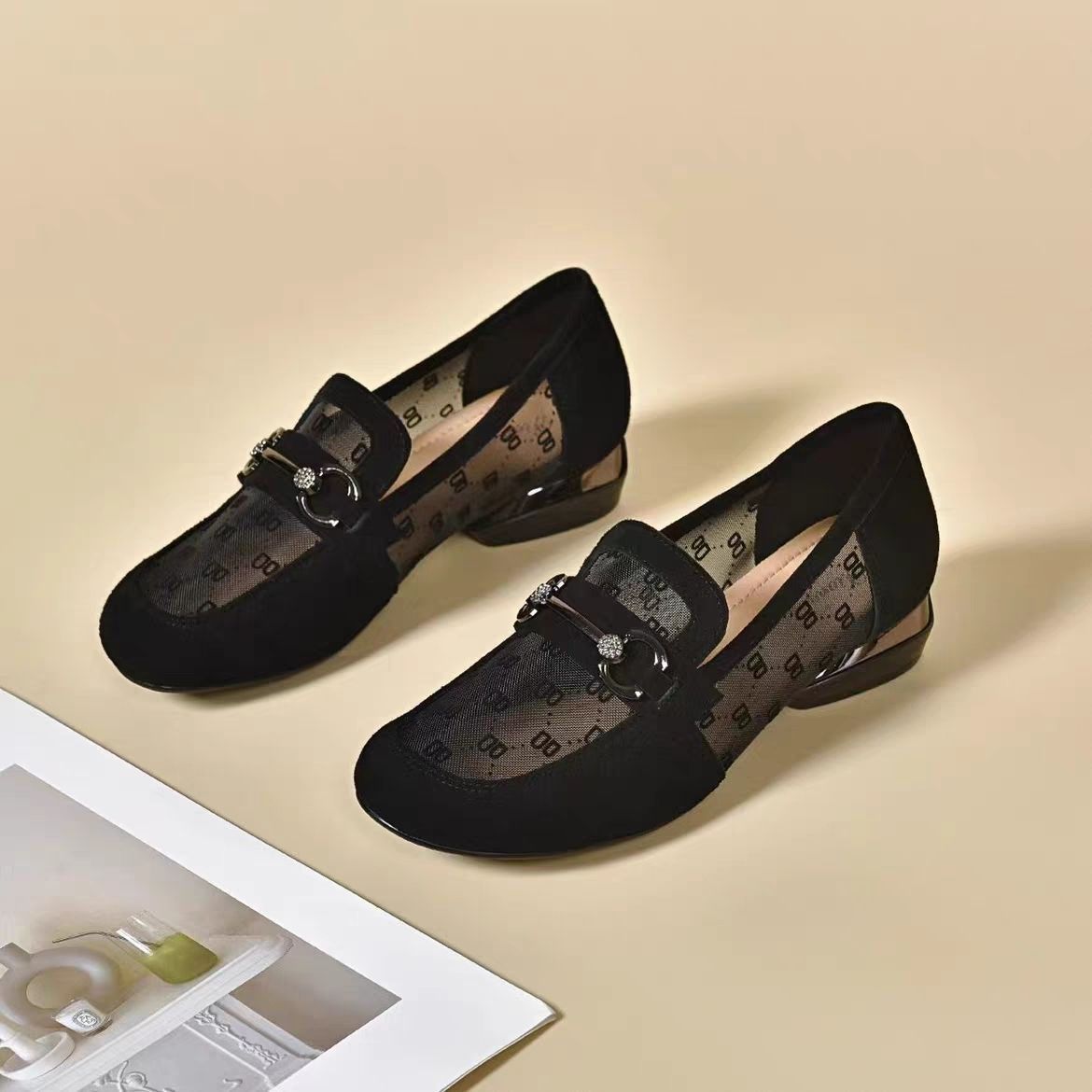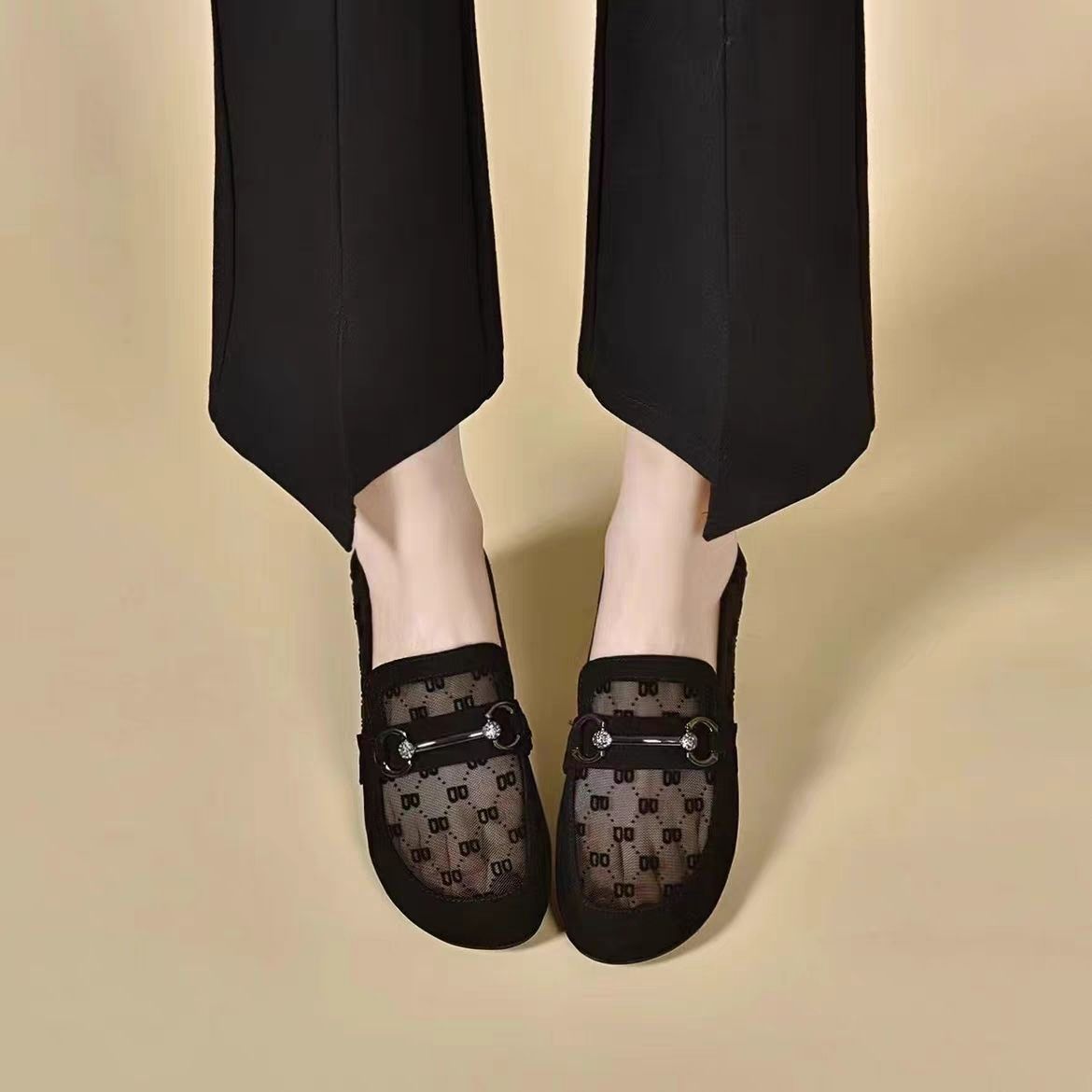 여성을위한 메쉬 로퍼 2025 여름 새로운 라운드 발가락 부드러운 단독 신발 두꺼운 굽 중공 통기성 탈취제 쿨 슈즈스토어 가기