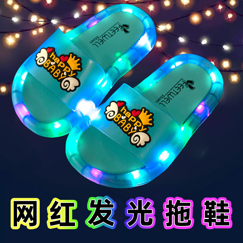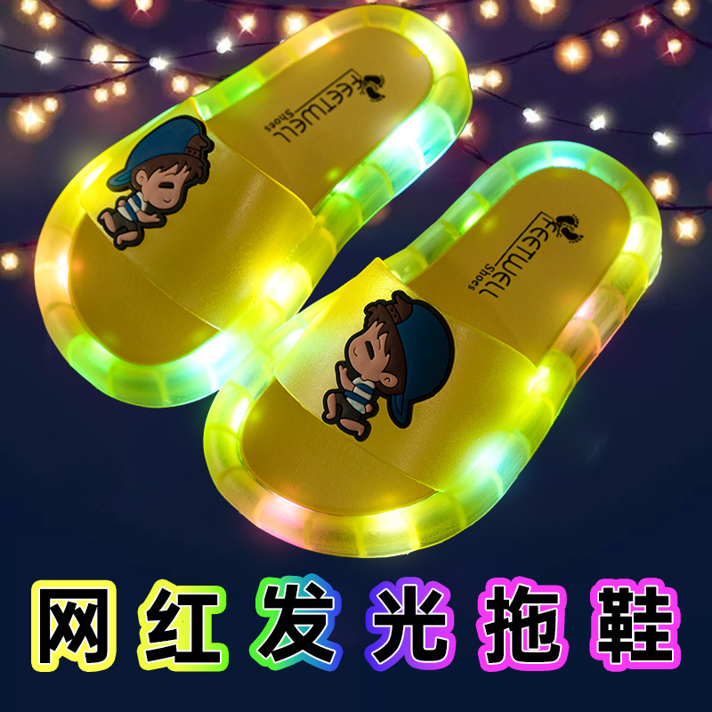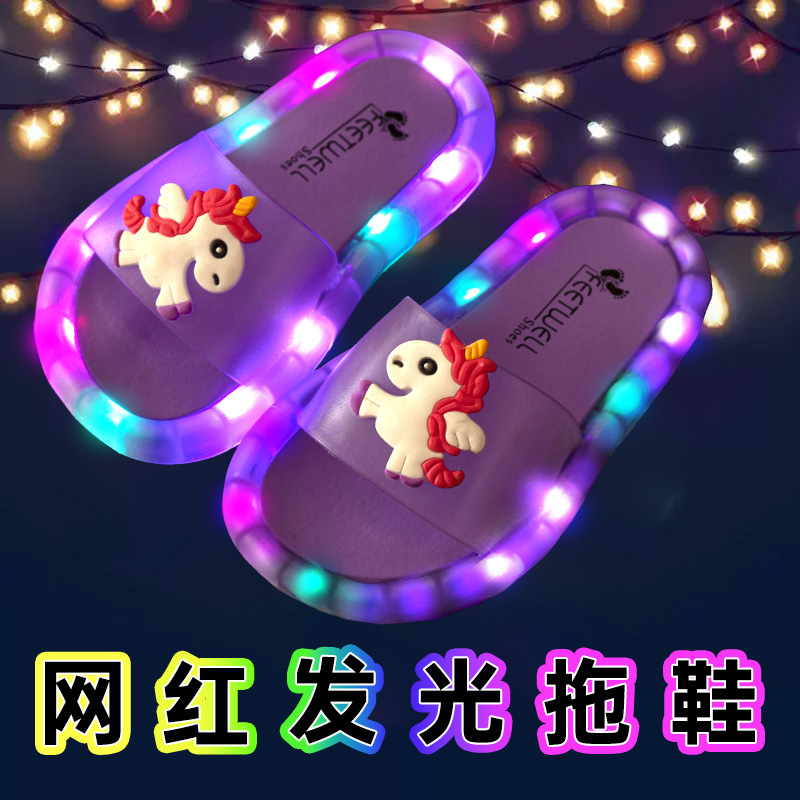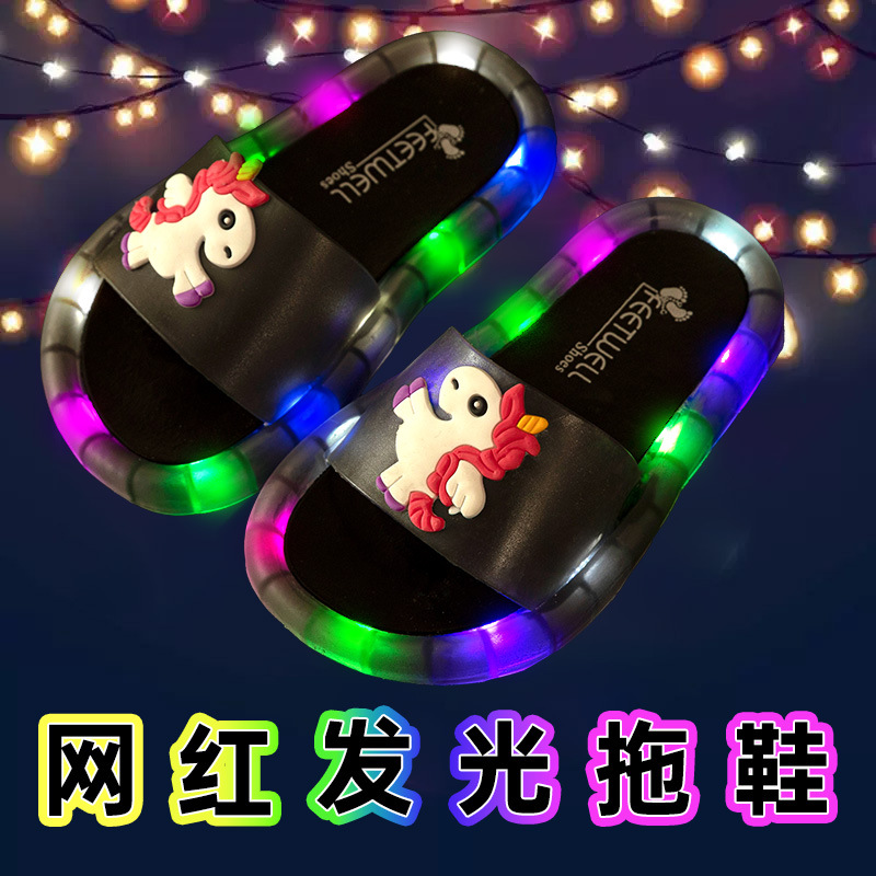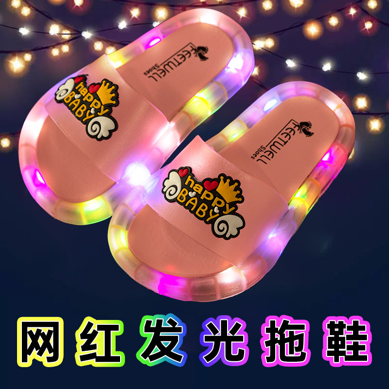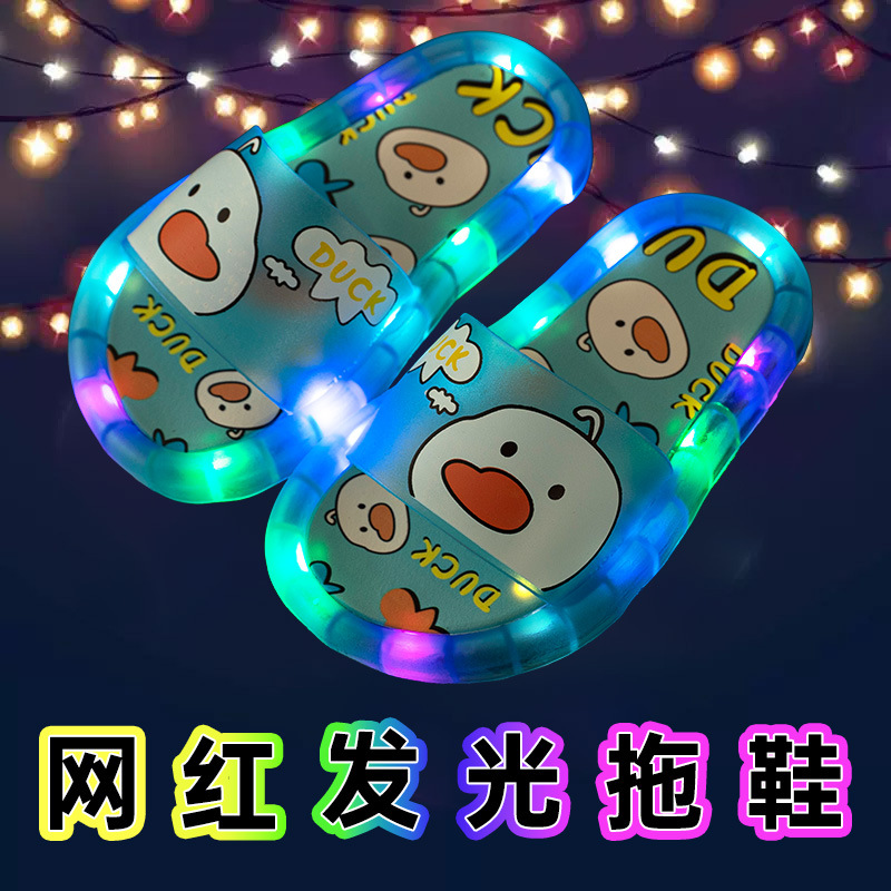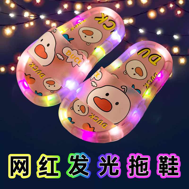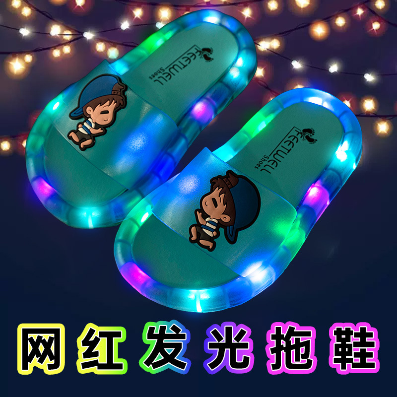 2025년 인터넷 연예인 소년과 소녀를 위한 빛나는 어린이 슬리퍼 여름 국경 간 실내 미끄럼 방지 만화 귀여운 조명 슬리퍼스토어 가기