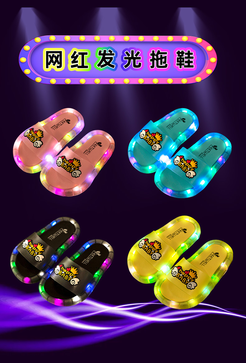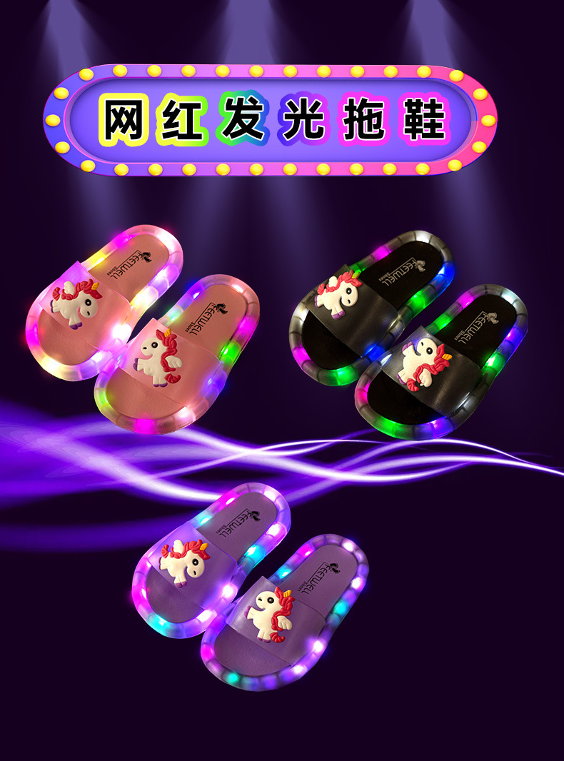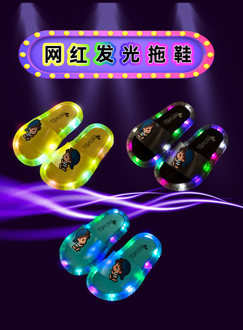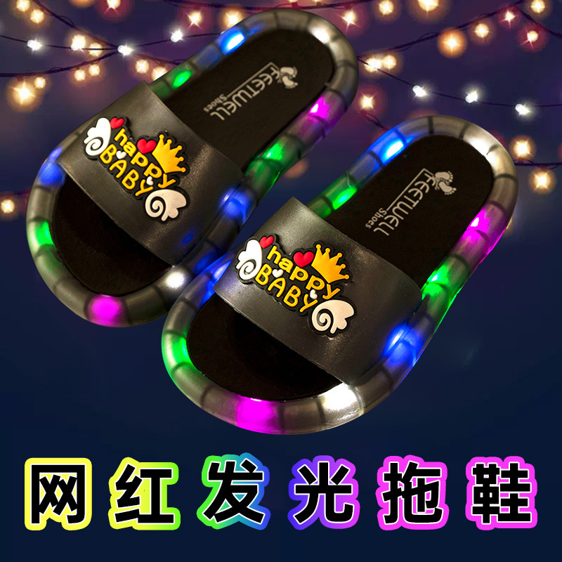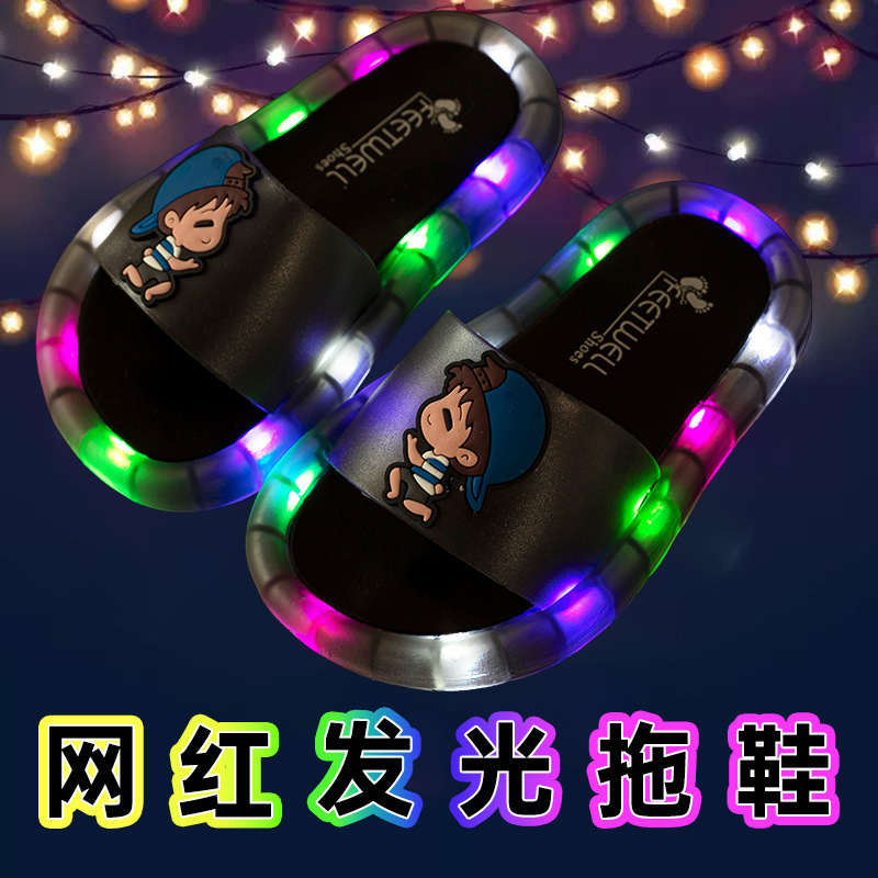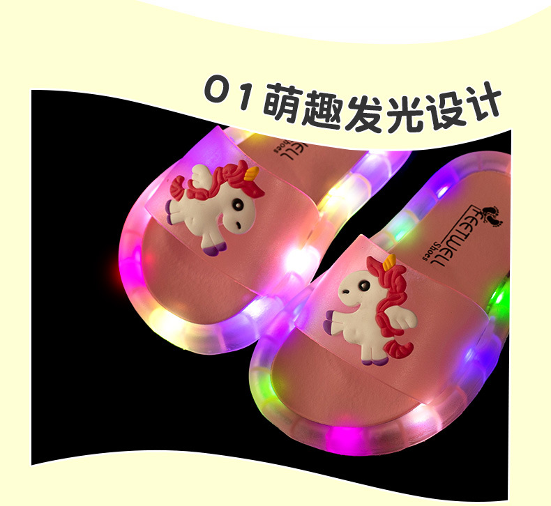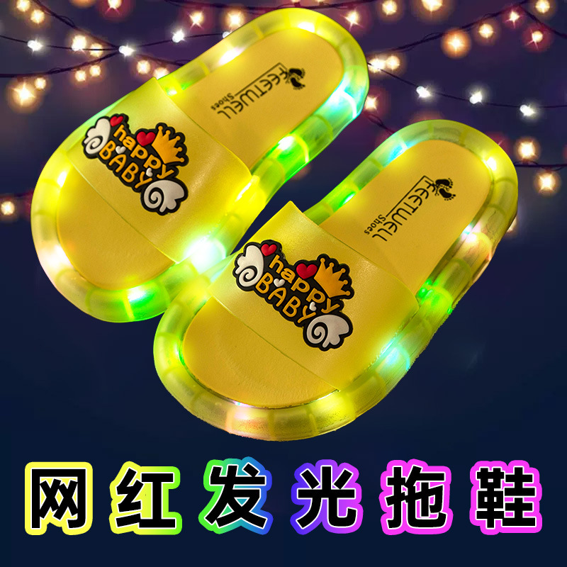 2025년 인터넷 연예인 소년과 소녀를 위한 빛나는 어린이 슬리퍼 여름 국경 간 실내 미끄럼 방지 만화 귀여운 조명 슬리퍼스토어 가기