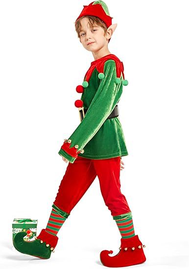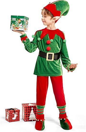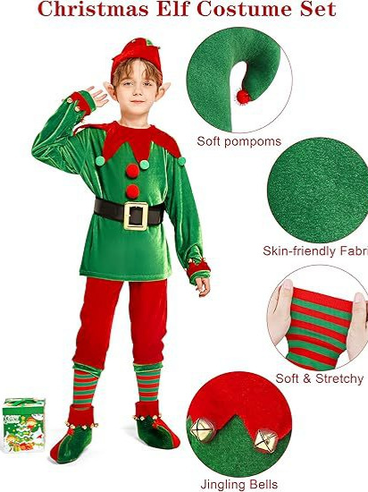 2025 크로스 보더 어린이 크리스마스 엘프 의상 세트 소년 드레스 산타 클로스 드레스 공연 의상스토어 가기