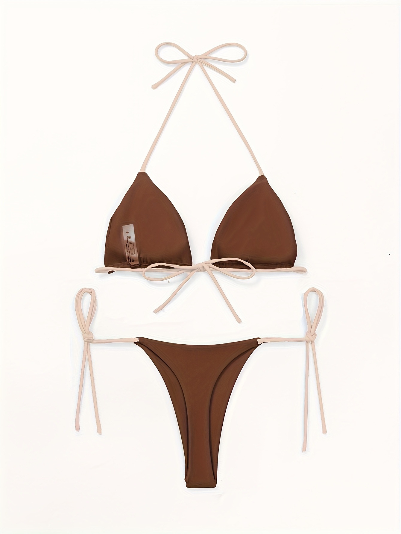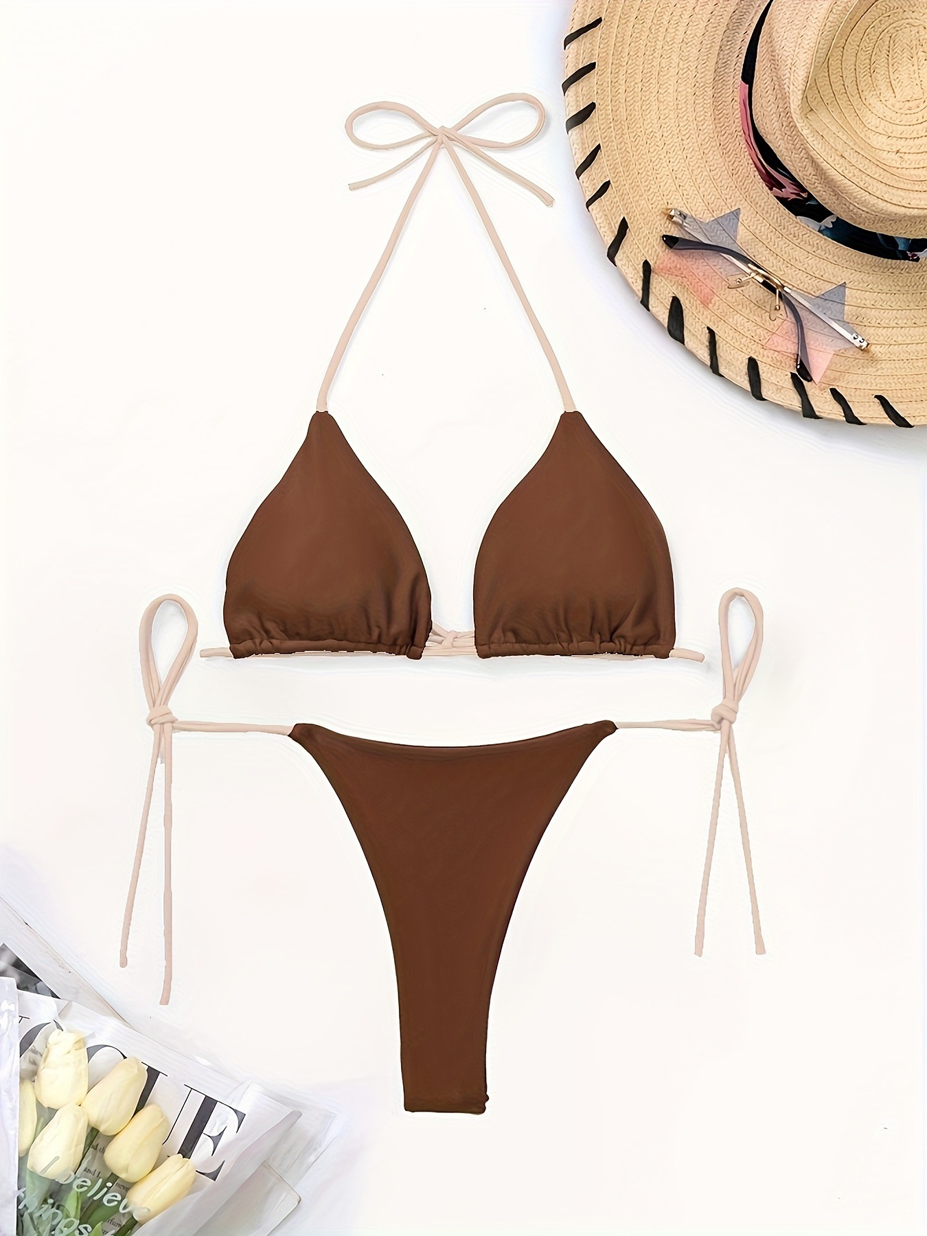 2025 새로운 유럽과 미국의 단색 섹시한 끈 핫 소녀 기질 여성 패션 비키니 수영복