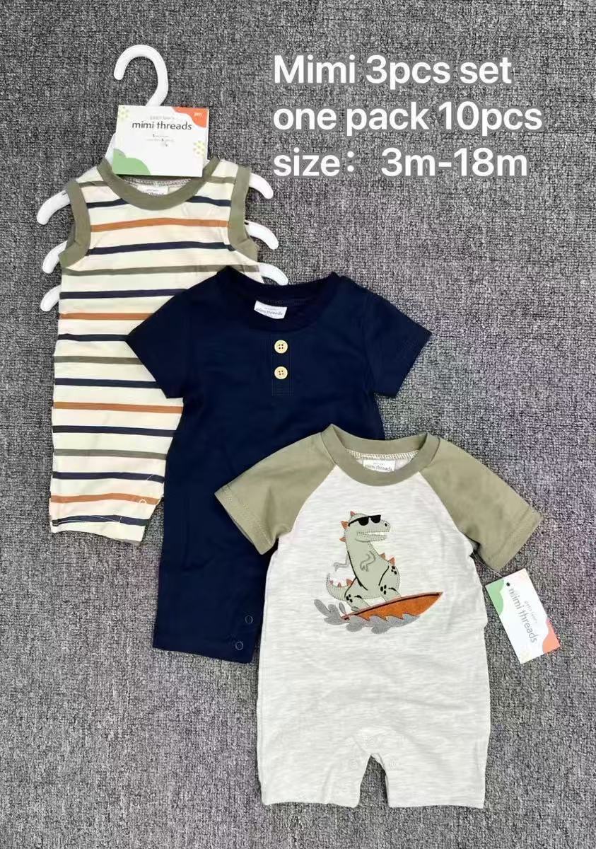 대외 무역 도매 남성과 여성 아기 만화 romper 슈트 3pc