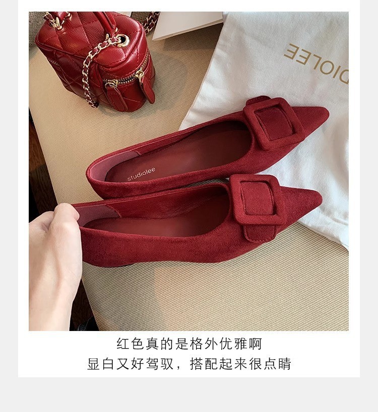 양가죽 버전~ 프렌치 스퀘어 버튼 레오파드 프린트 슈즈 플랫 메리제인 슈즈 여성용 펌프스 슈즈 소프트솔 포인티드 슈즈