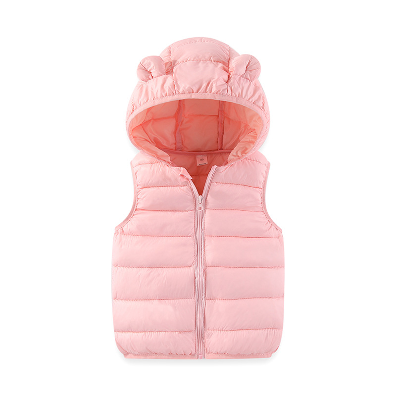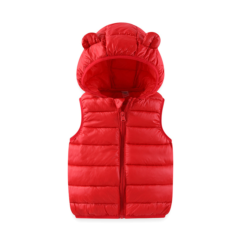 어린이 다운 코튼 조끼 가을, 겨울 한국어 버전 중대형 소년 소녀 후드 작은 귀 조끼 유치원 조끼