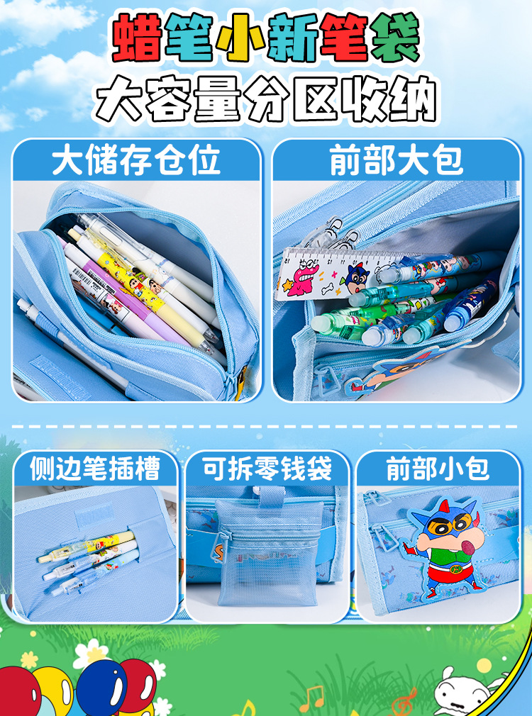 크레용 신짱 다층 대용량 연필 가방 정품 만화 신짱 다기능 연필 상자 학생 보관 문구 상자스토어 가기
