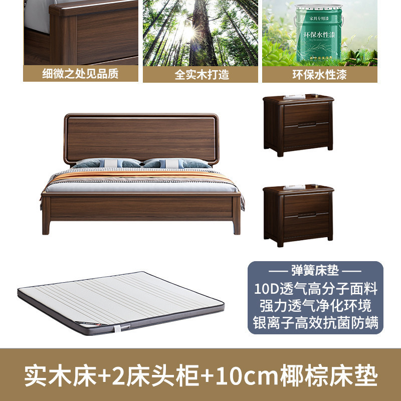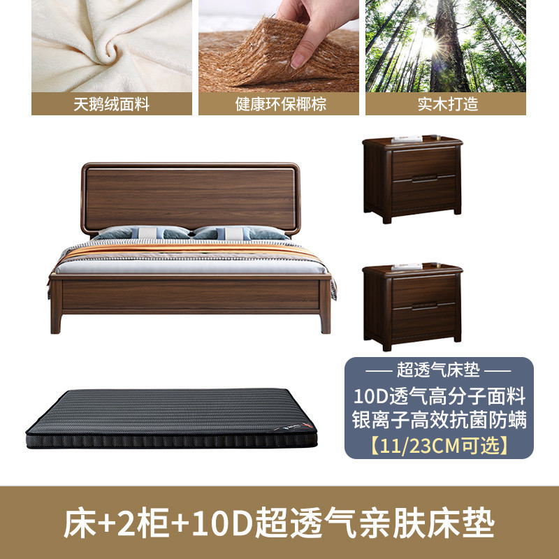 황금 백단 단단한 나무 침대 1.8m 더블 침대 단단한 나무 침대 1.5m 간단한 현대 중국 스타일의 수납 마스터 침실 웨딩 침대