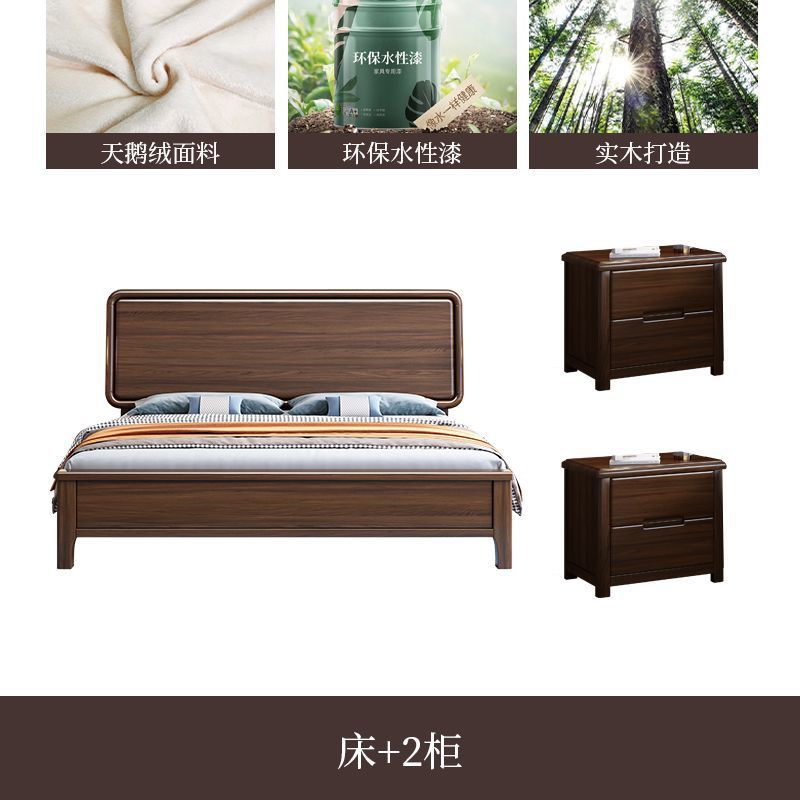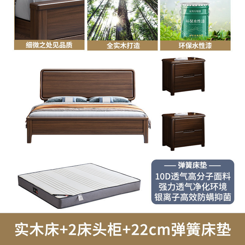 황금 백단 단단한 나무 침대 1.8m 더블 침대 단단한 나무 침대 1.5m 간단한 현대 중국 스타일의 수납 마스터 침실 웨딩 침대스토어 가기