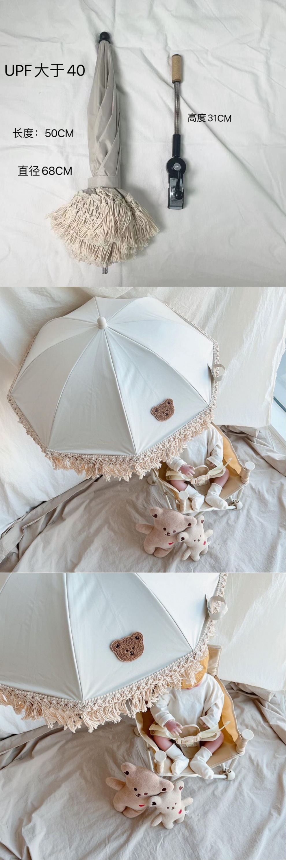 한국 자수 곰 어린이 야외 유모차 파라솔 아기 해변 자외선 차단 우산스토어 가기