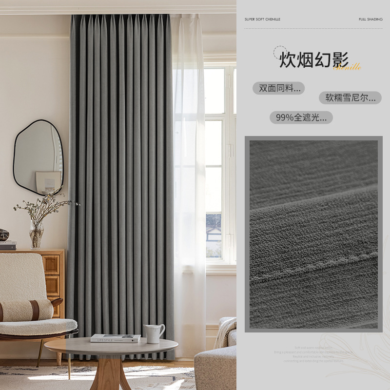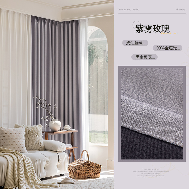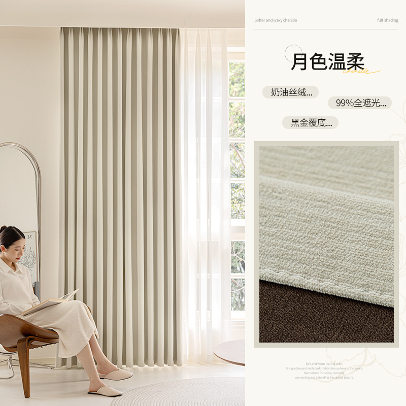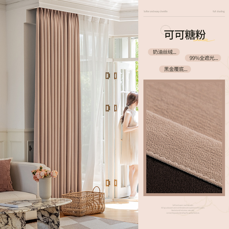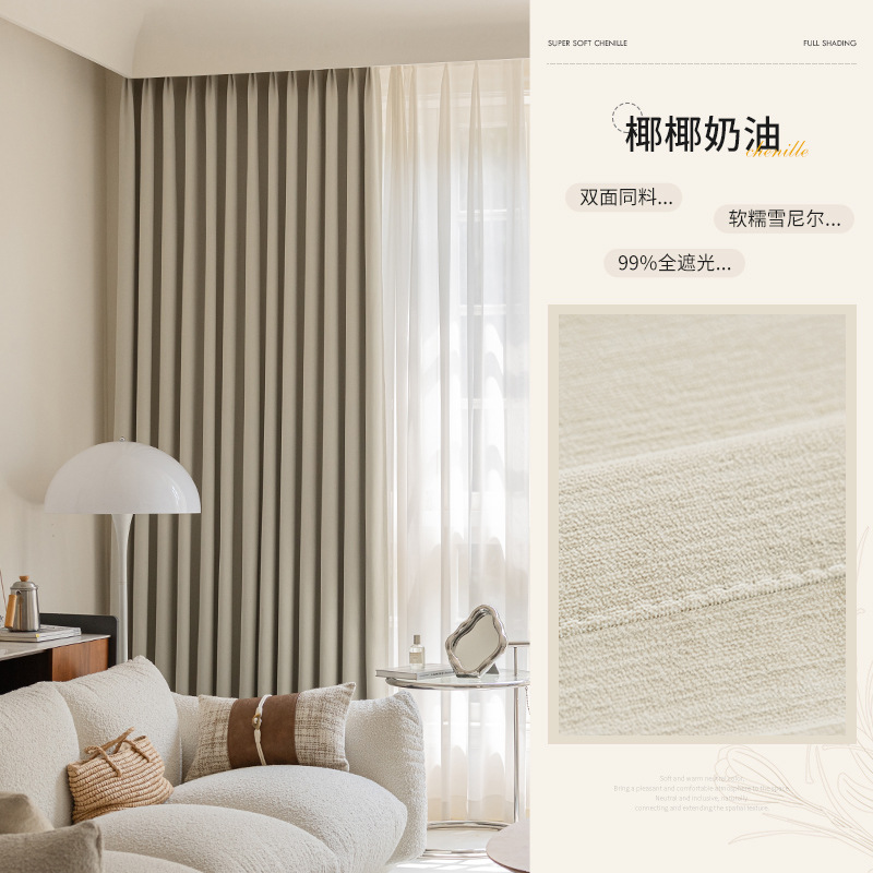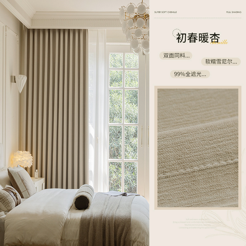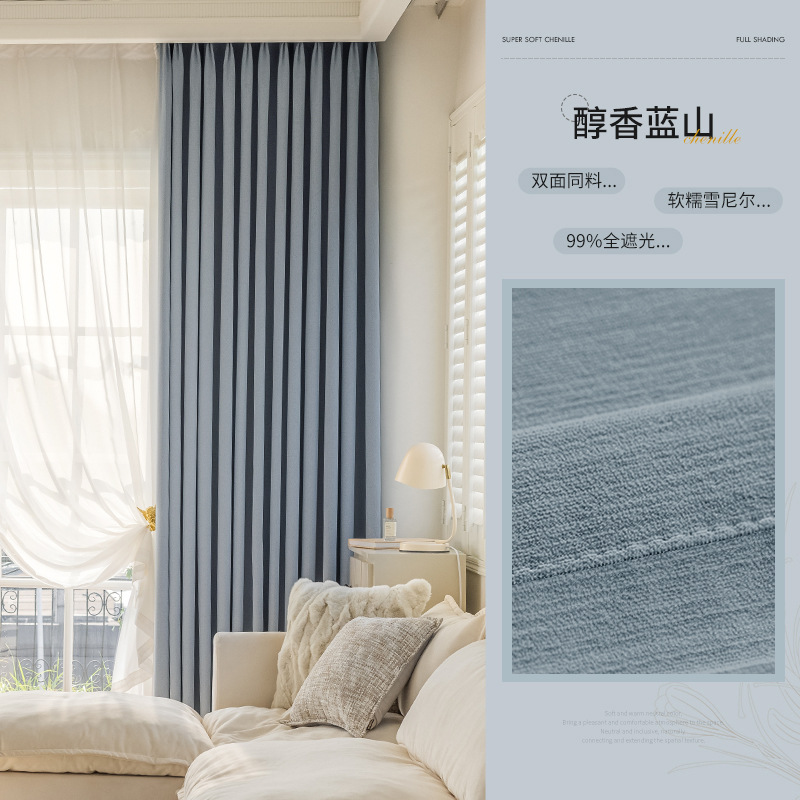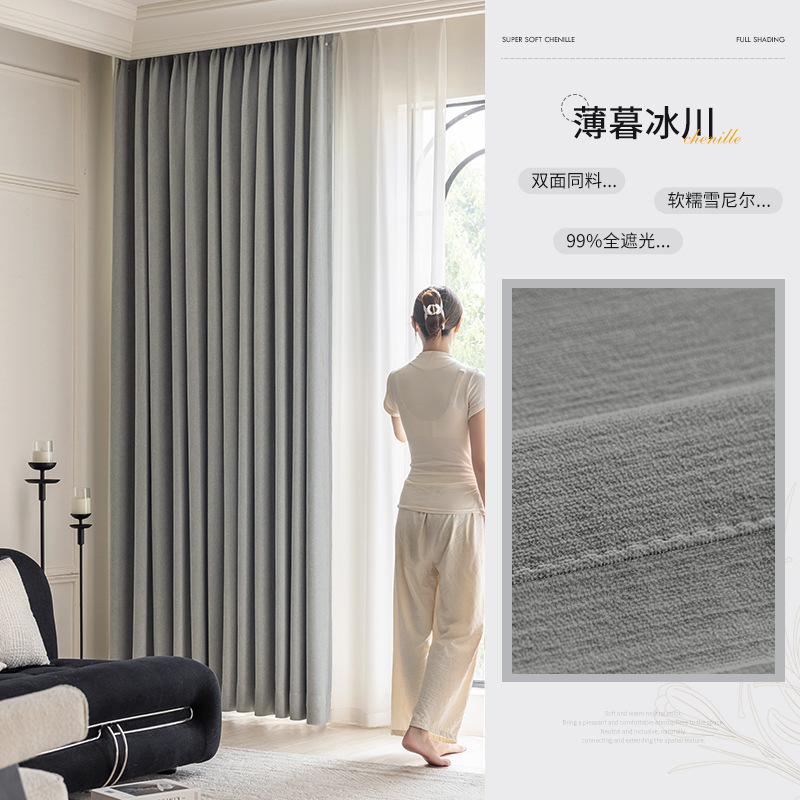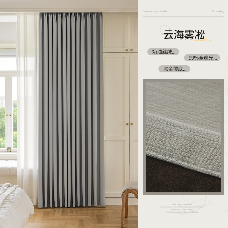 샤오싱 케치아오 두꺼운 양면 셔닐 커튼, 집 전체를 차광하는 2025년 신형 침실 고급 거실 침실용
