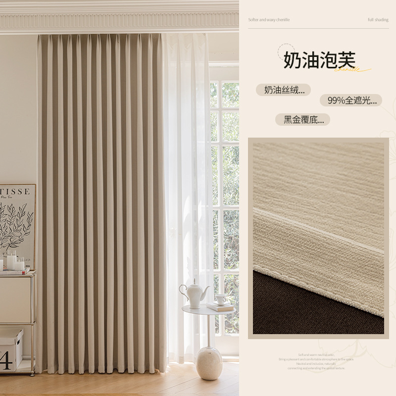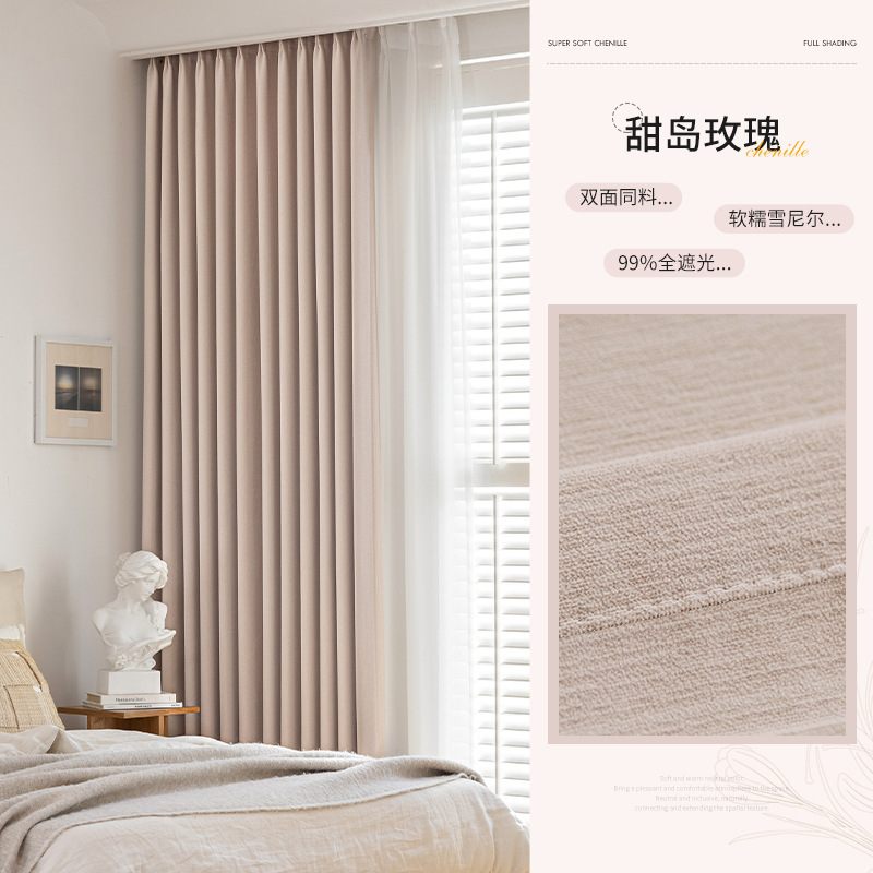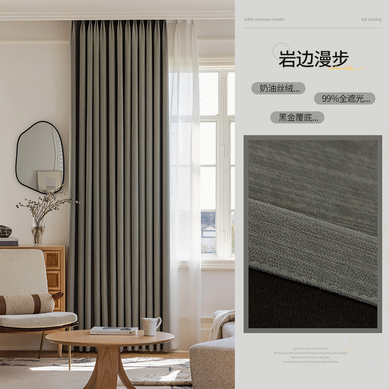 샤오싱 케치아오 두꺼운 양면 셔닐 커튼, 집 전체를 차광하는 2025년 신형 침실 고급 거실 침실용스토어 가기