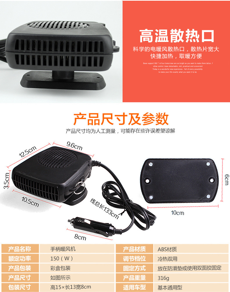 직접 판매 앞 유리 해동 장치 12*14*7.5CM 자동차 2-in-1 냉난방 기계 자동차 히터스토어 가기