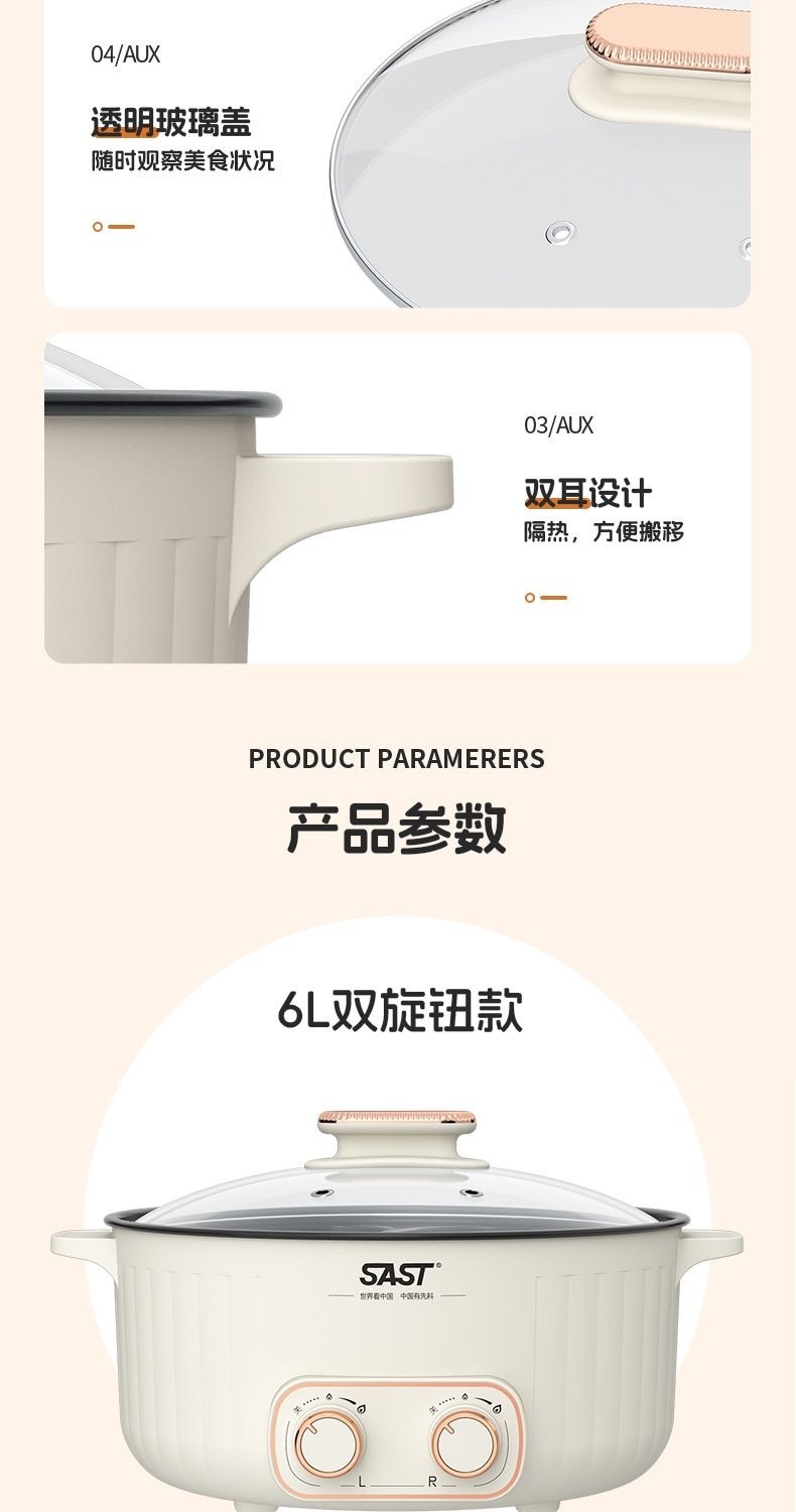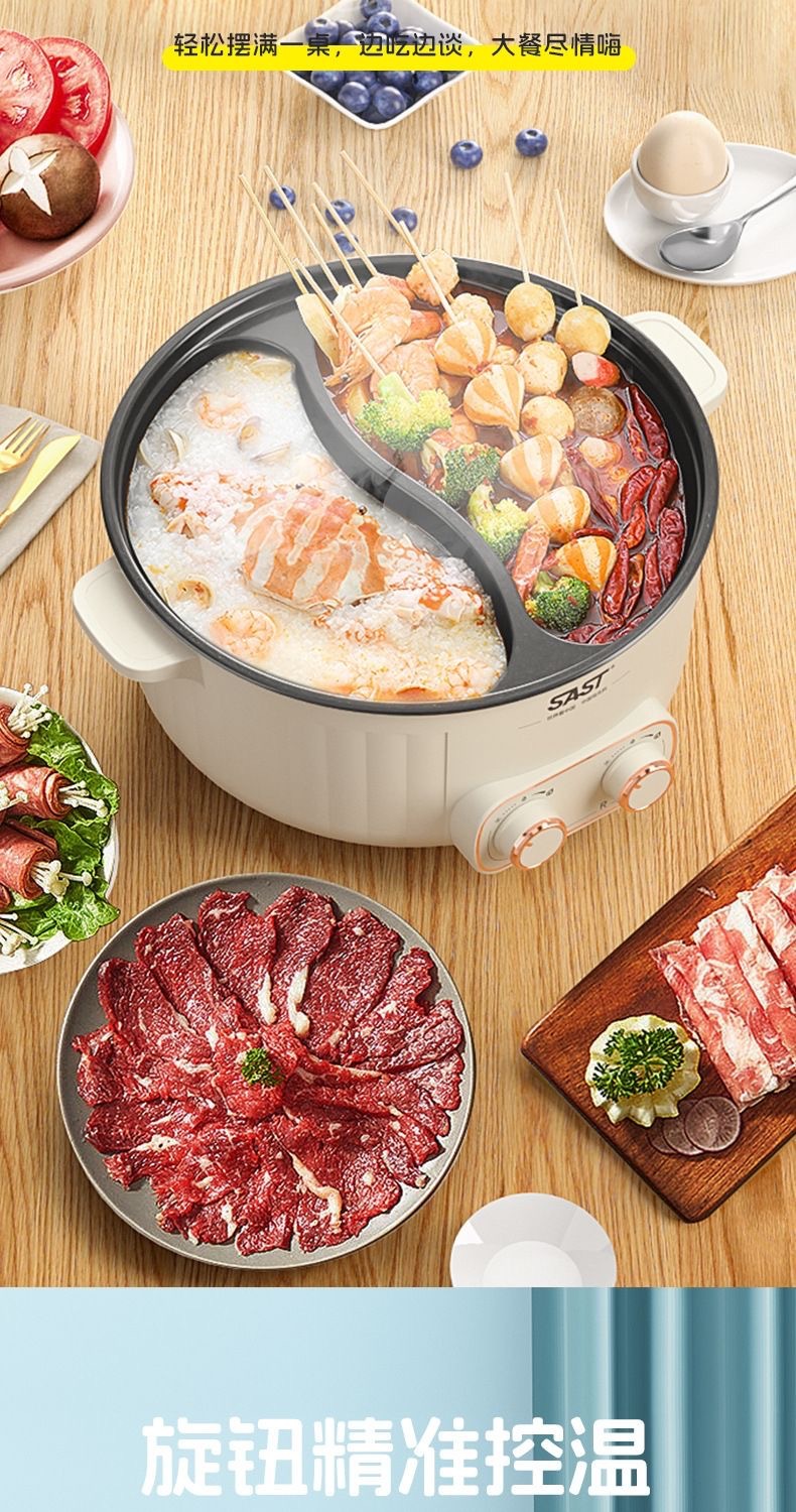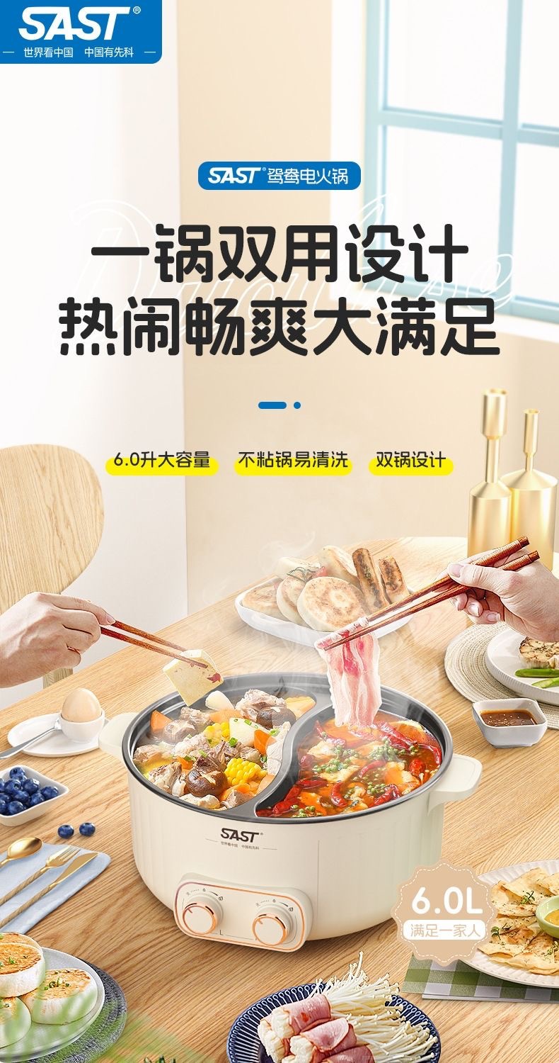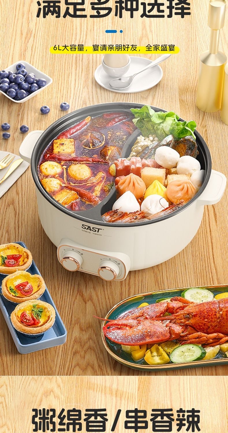 SAST 가정용 전기 냄비 6L 대용량 Yuanyang 전기 냄비 다기능 이중 제어 고출력 올인원 전기 냄비
