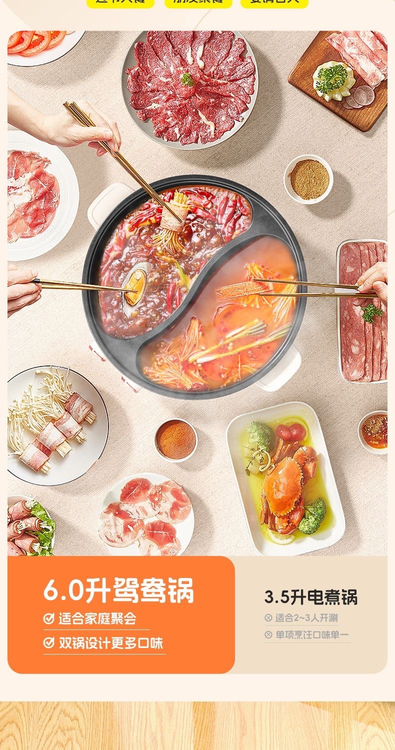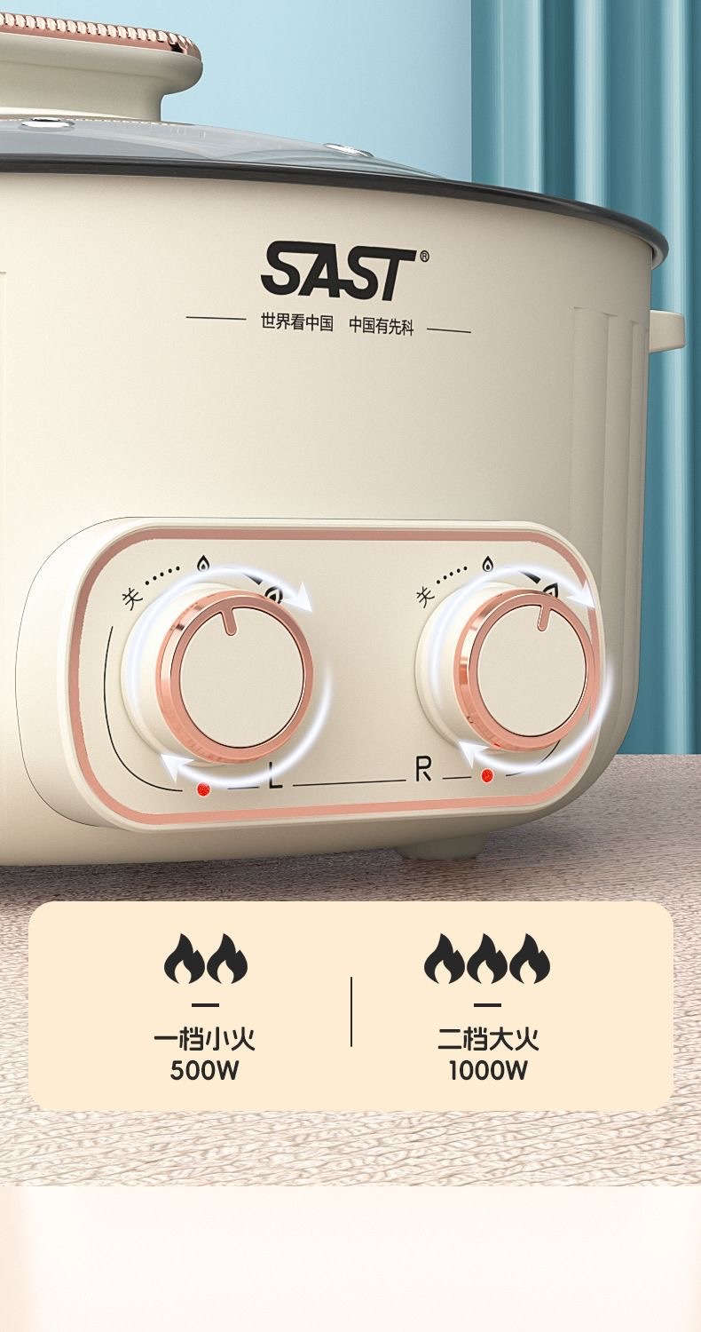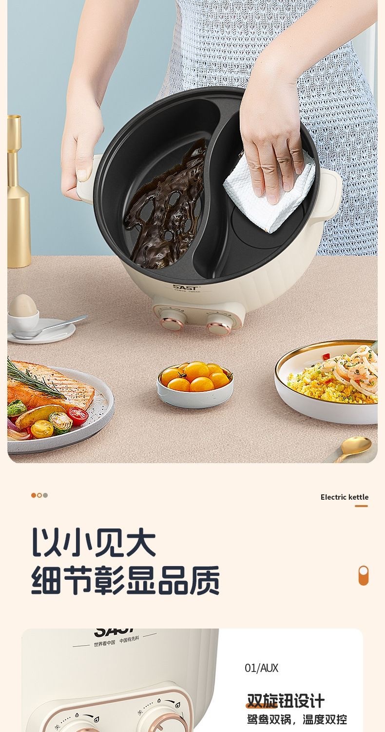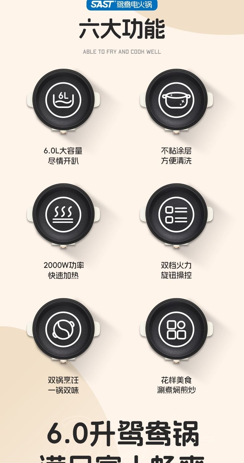 SAST 가정용 전기 냄비 6L 대용량 Yuanyang 전기 냄비 다기능 이중 제어 고출력 올인원 전기 냄비