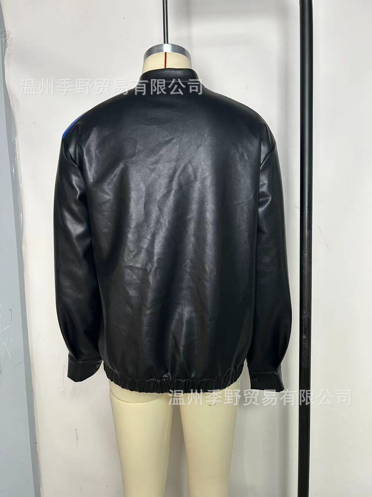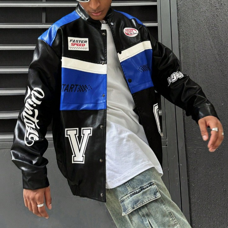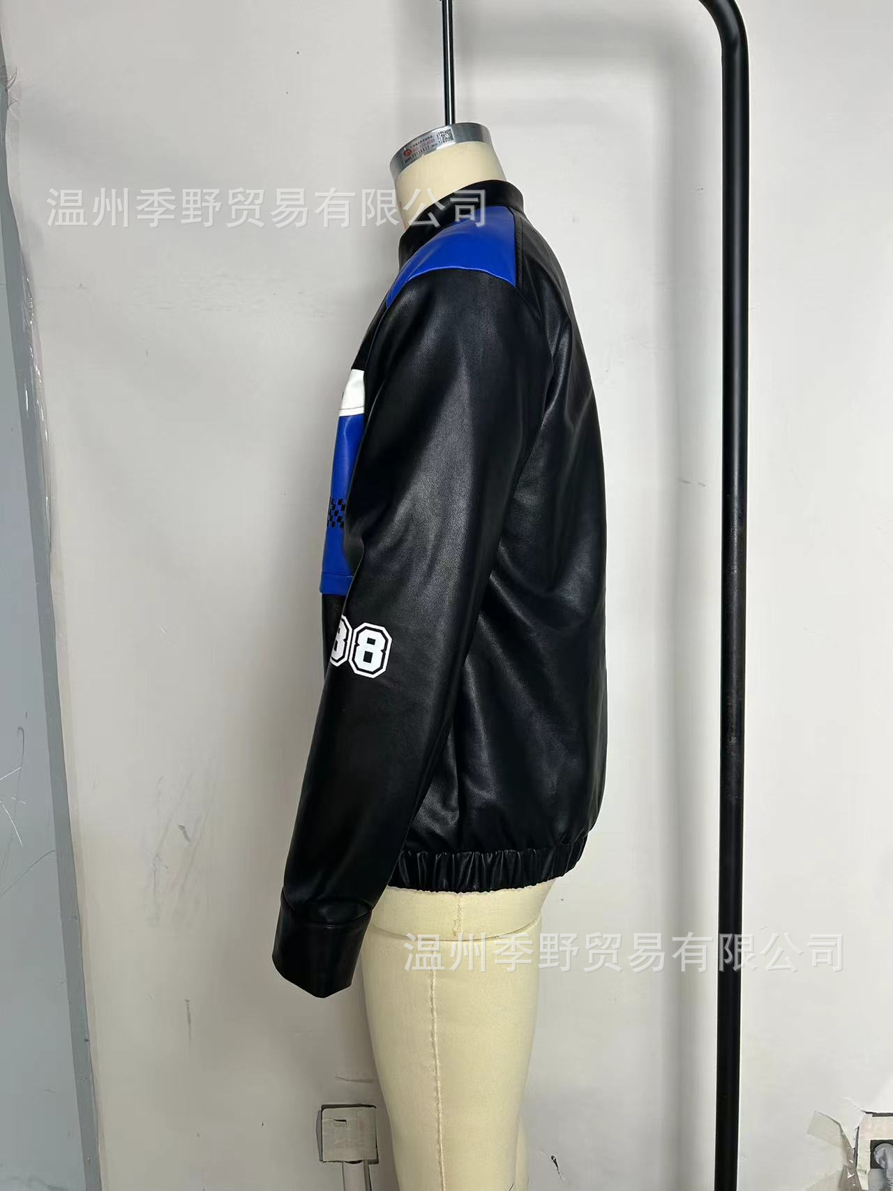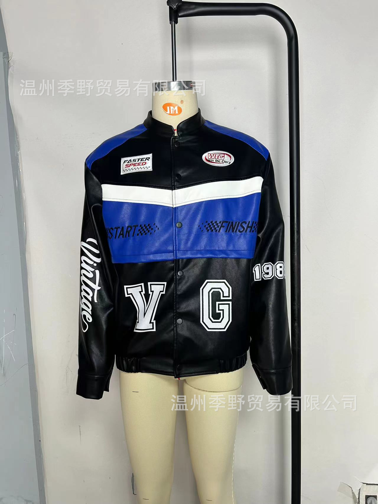 가을 겨울 해외 무역 유럽 및 미국 남성복 PU 가죽 재킷 루즈핏 재킷 남성 스트리트 레이싱 테무 아마존