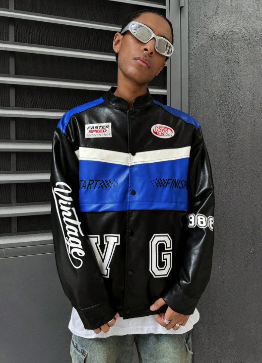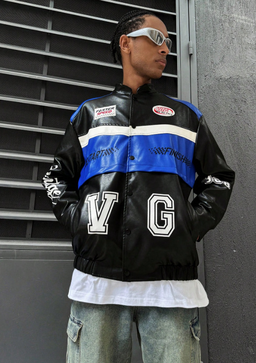 가을 겨울 해외 무역 유럽 및 미국 남성복 PU 가죽 재킷 루즈핏 재킷 남성 스트리트 레이싱 테무 아마존스토어 가기