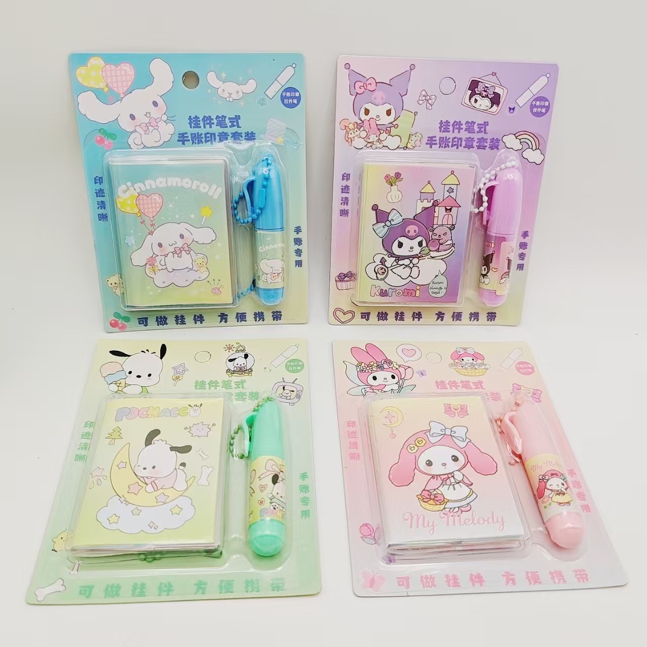 산리오 펜던트 체인 노트 패드 스탬프 핸드북 세트 다중 매장 어린이 학생 문구 영감 상품